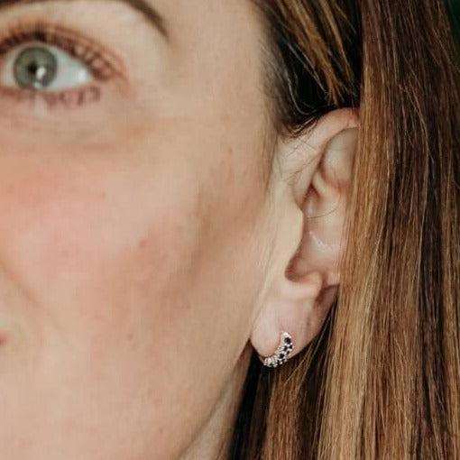 Add some rock n roll edge to your jewellery collection with these cool black and silver galaxy huggies.