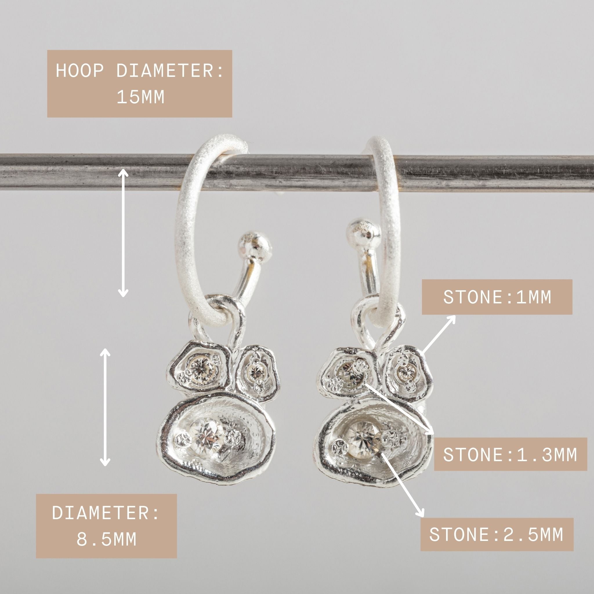 White Topaz Silver Lichen Hoop Earrings