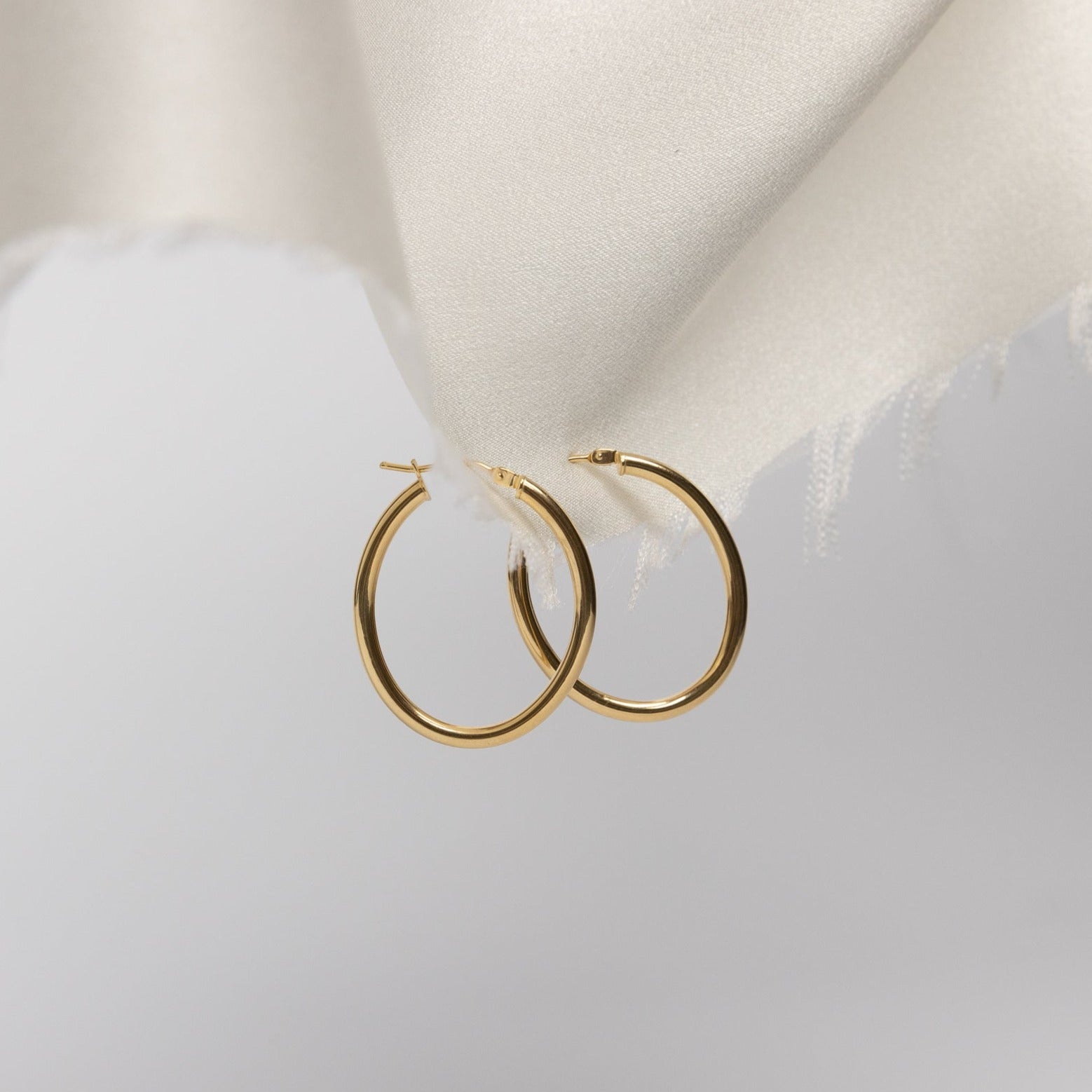 Perfect for gifting these oval solid gold hoops are part of our fine jewellery collection. Made to last a lifetime and perfect to be worn every day.