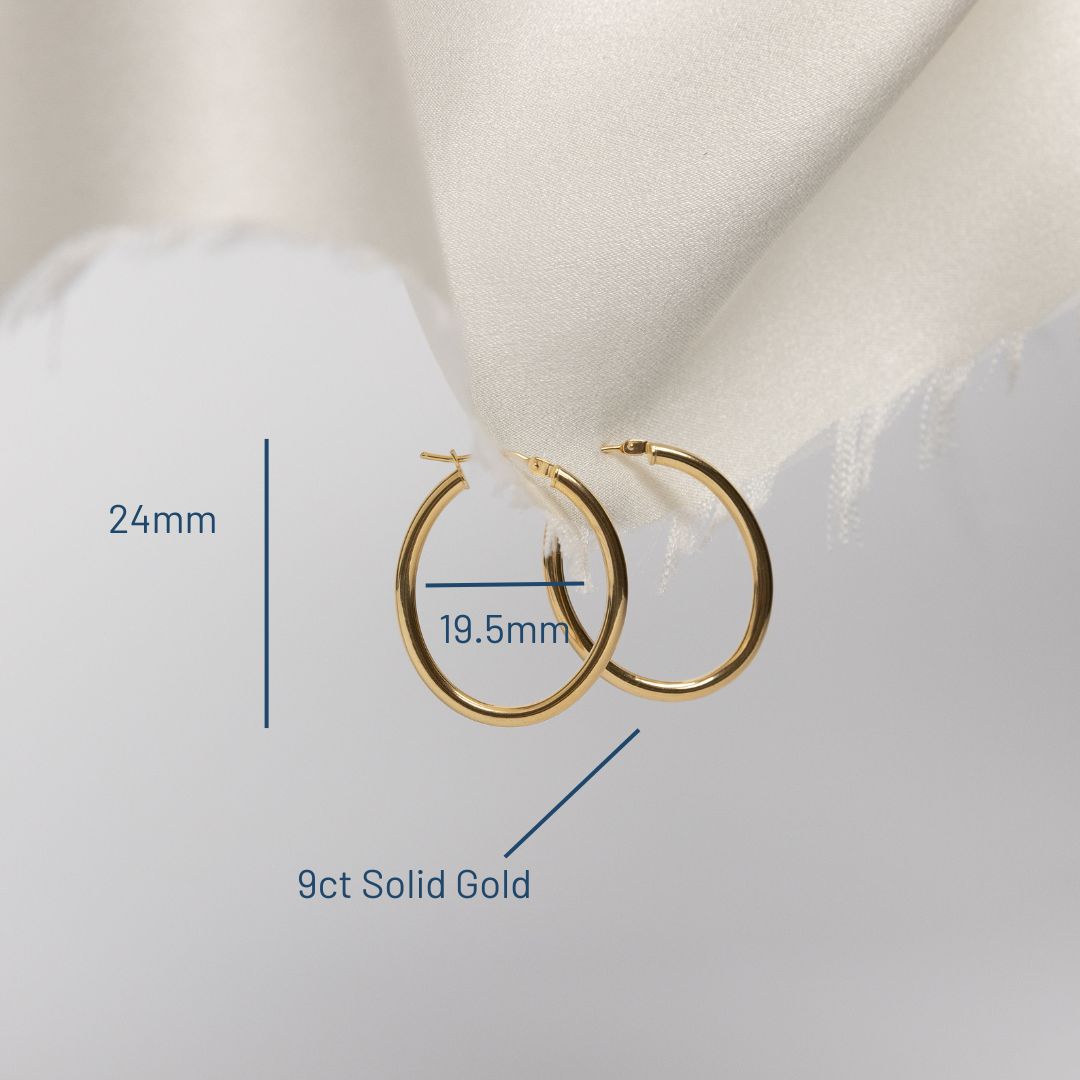 The hollow inside makes these 24mm hoops comfortable to wear all day and night. The latch clasp means you won't lose your new favourites.
