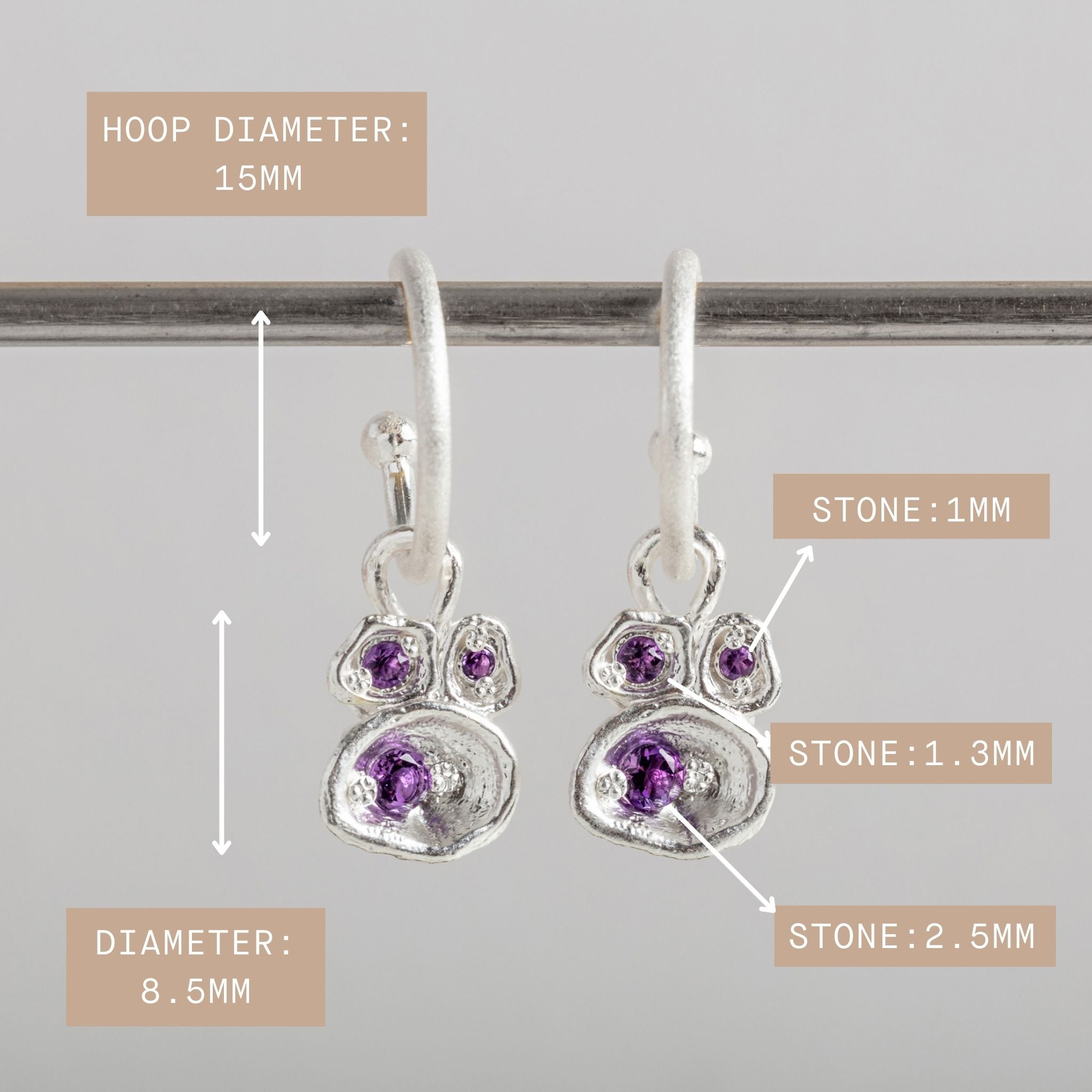 Stand out from the crowd with unique gemstone hoops that put all the attention on you. Expertly handmade, these nature-inspired silver earrings, finished with bold purple amethyst gemstones really make an impact.