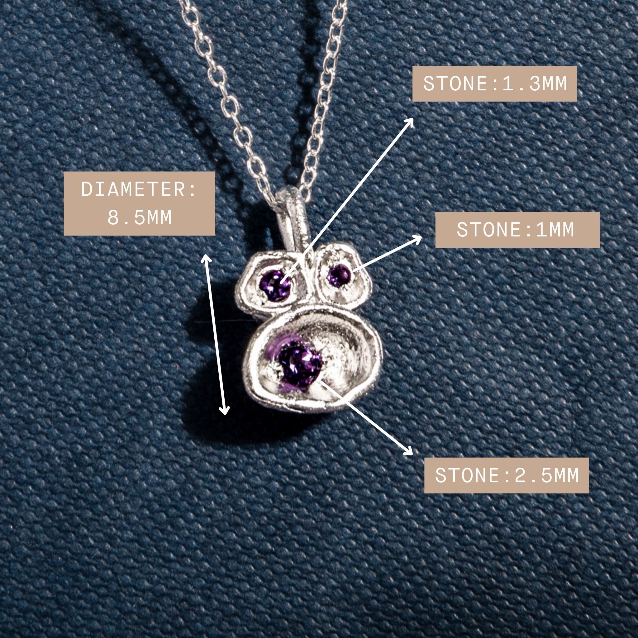 The hidden beauty of lichen inspires this striking gemstone jewellery. One of nature's pioneer species - renowned for its ability to thrive in any condition - it grows slowly but surely, each year. This organic silver pendant, filled with small amethyst stones, is a daily reminder to keep going step by step, to achieve our dreams.