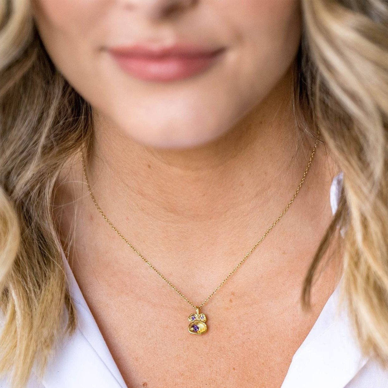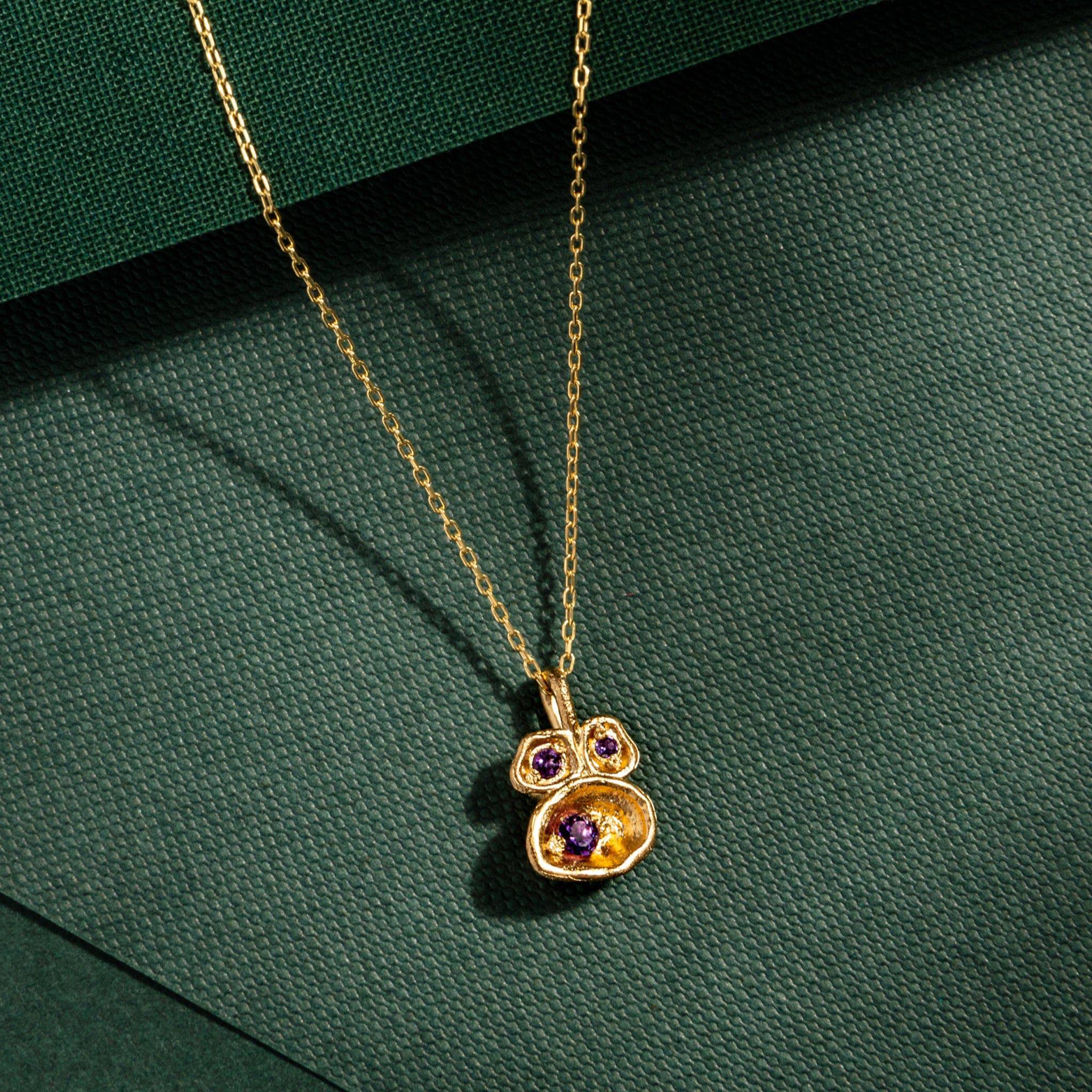 With luxurious details and sparkling stones, this gold vermeil and amethyst drop necklace is a little piece of magic you'll wear on repeat. Pairing luxury materials with unique design, stand out from the crowd in birthstone jewellery that's out of the ordinary.