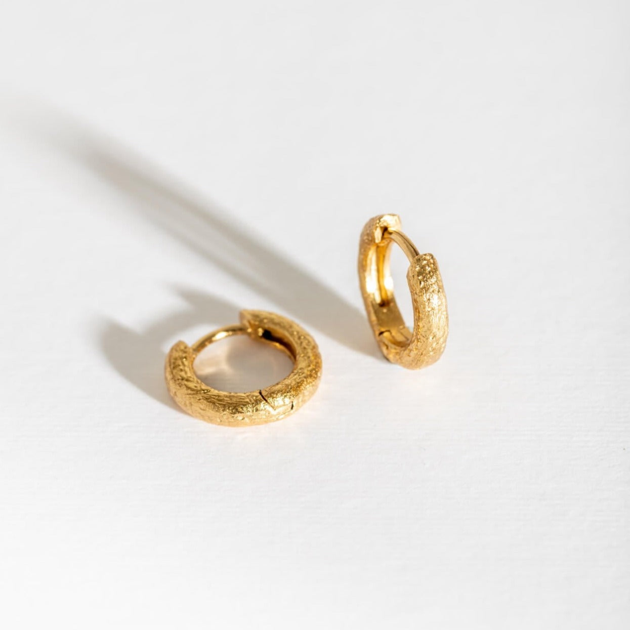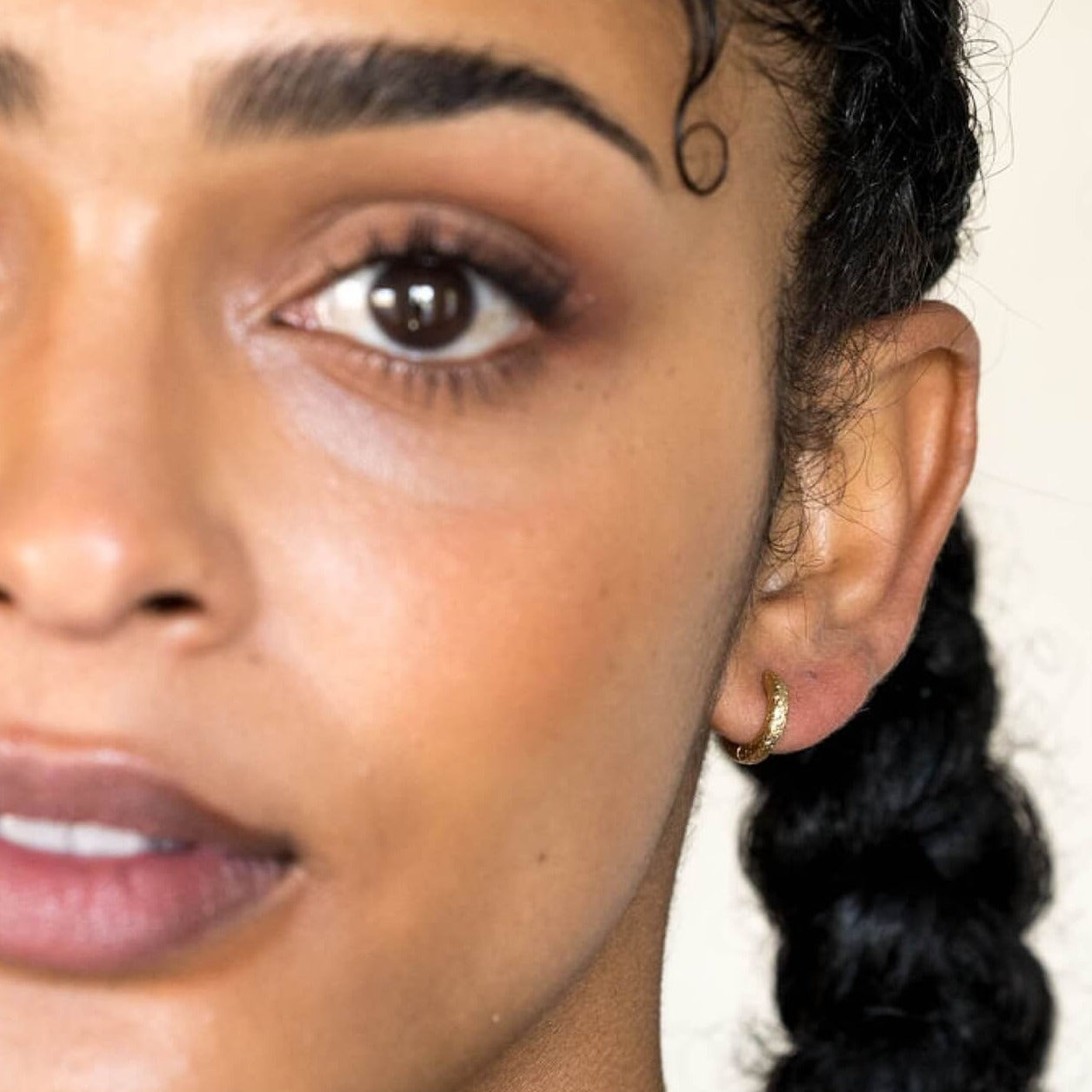When less is more. These simple gold huggie hoops have a subtle textured surface that spells out quiet, stylish confidence. Get that "quiet luxury" expensive look without breaking the bank.