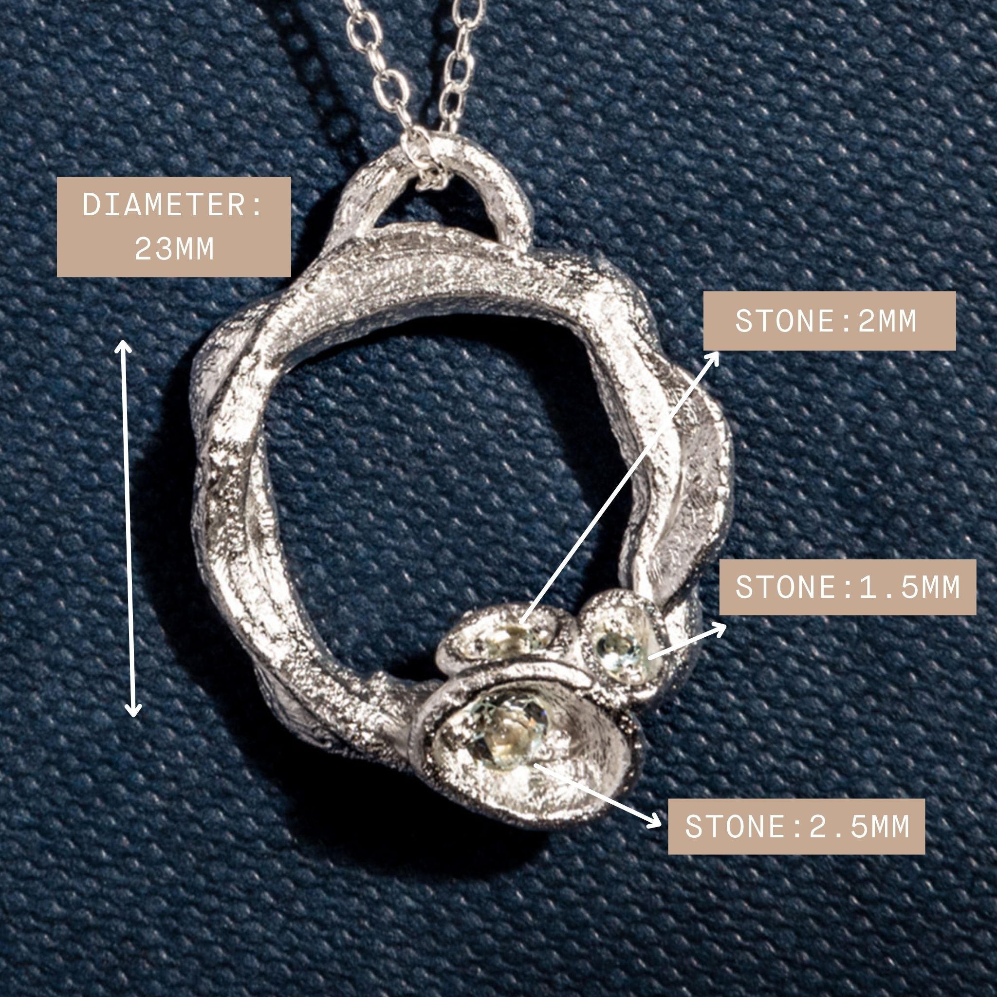 - Pendant with connector: 23mm, Gemstones: 1.5mm, 2mm and 2.5mm