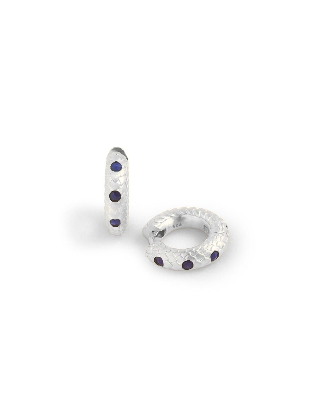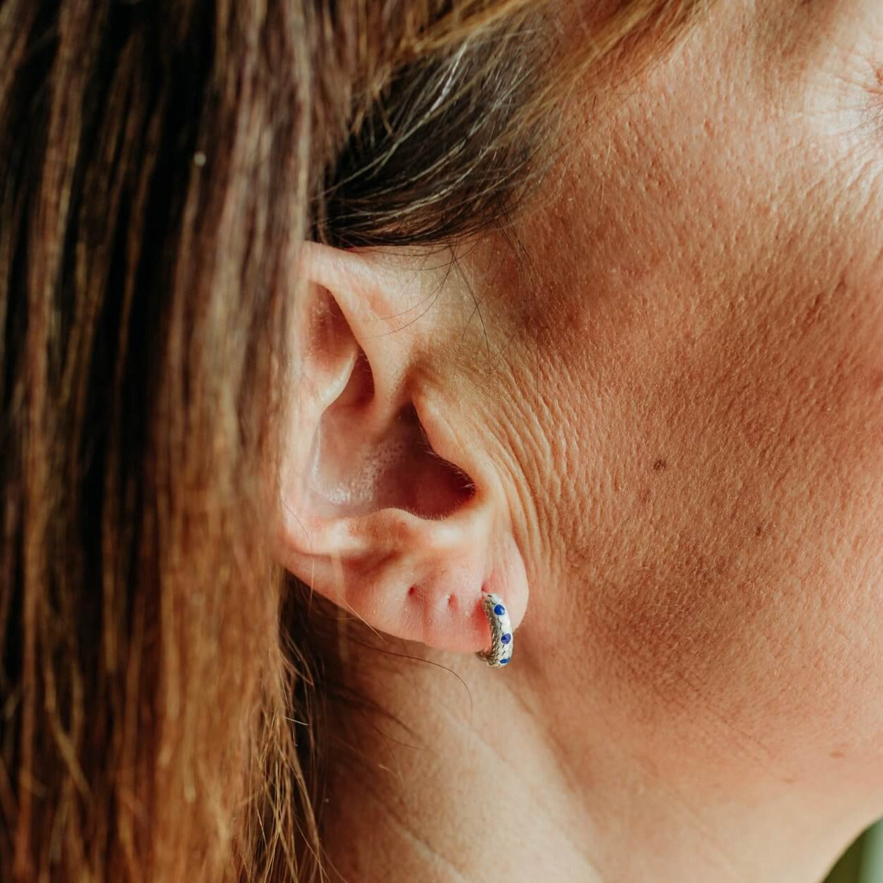 The matte brush finish of these recycled silver small hoops adds a more expensive feel. And up the wearability by wearing them backwards, showcasing the striking pattern.