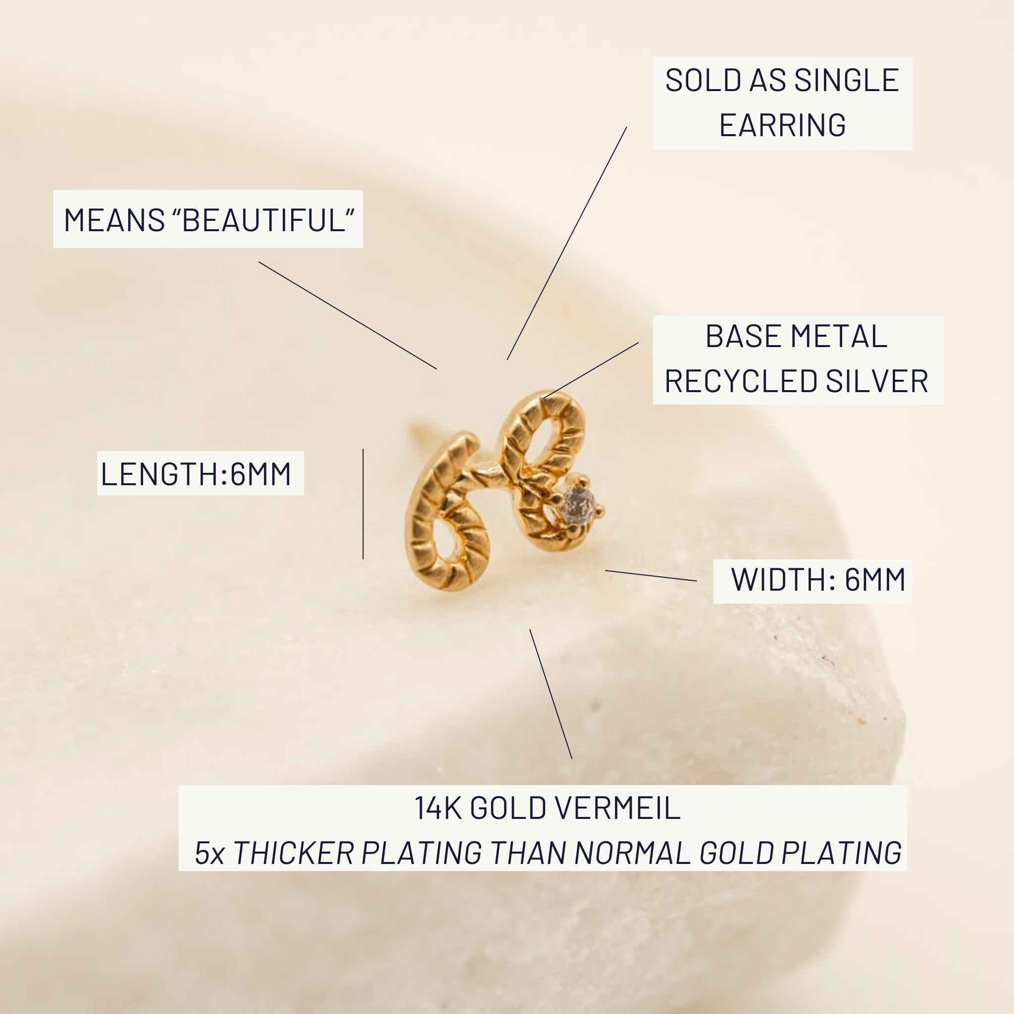 Plated in 14k gold vermeil, this earring si both durable and sustainable, made with both life and the earth in mind.