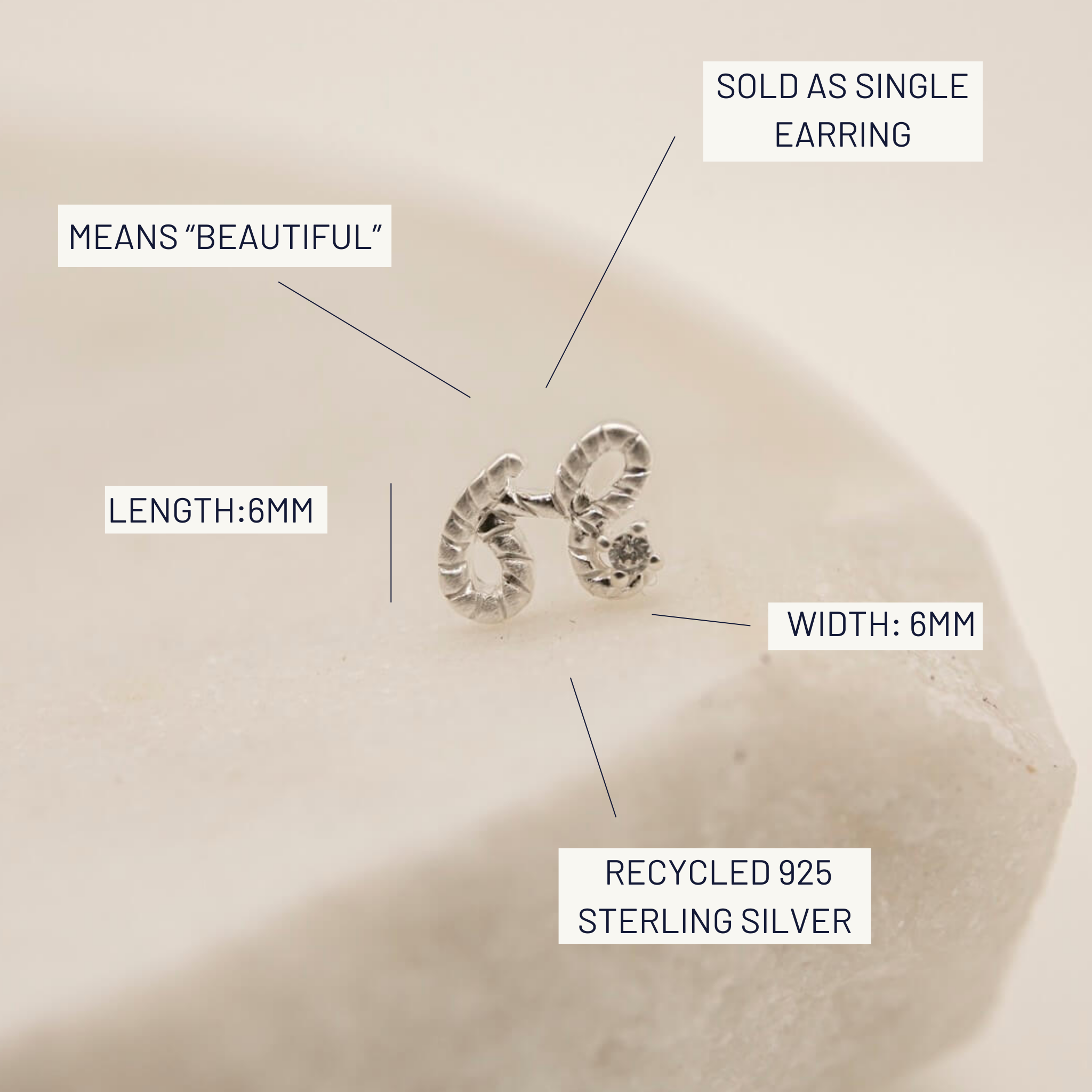 It’s only fitting that the word ‘Beautiful’ should look so, well, beautiful as a Shorthand stud earring. Handcrafted in recycled silver with twisted rope detail and a cubic zirconia, this hidden message jewellery is a personal declaration and a representation of that inner voice.