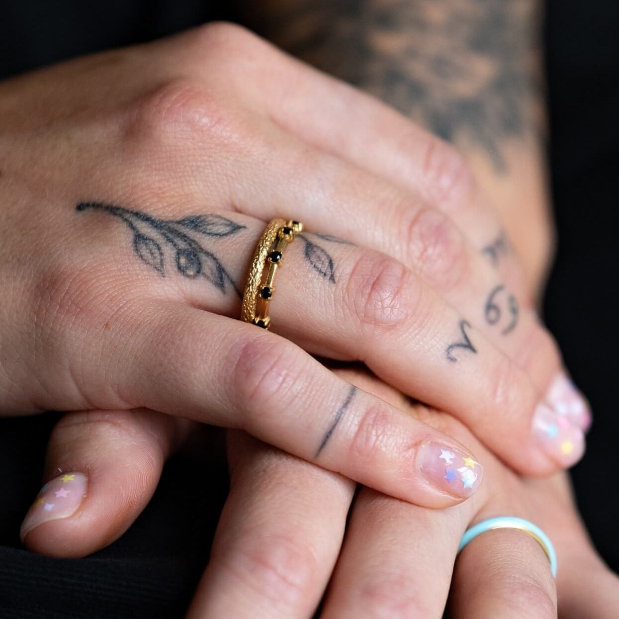 Black and Gold Studded Stacking Ring