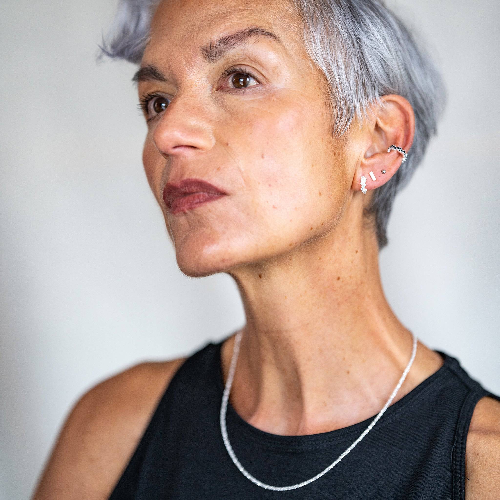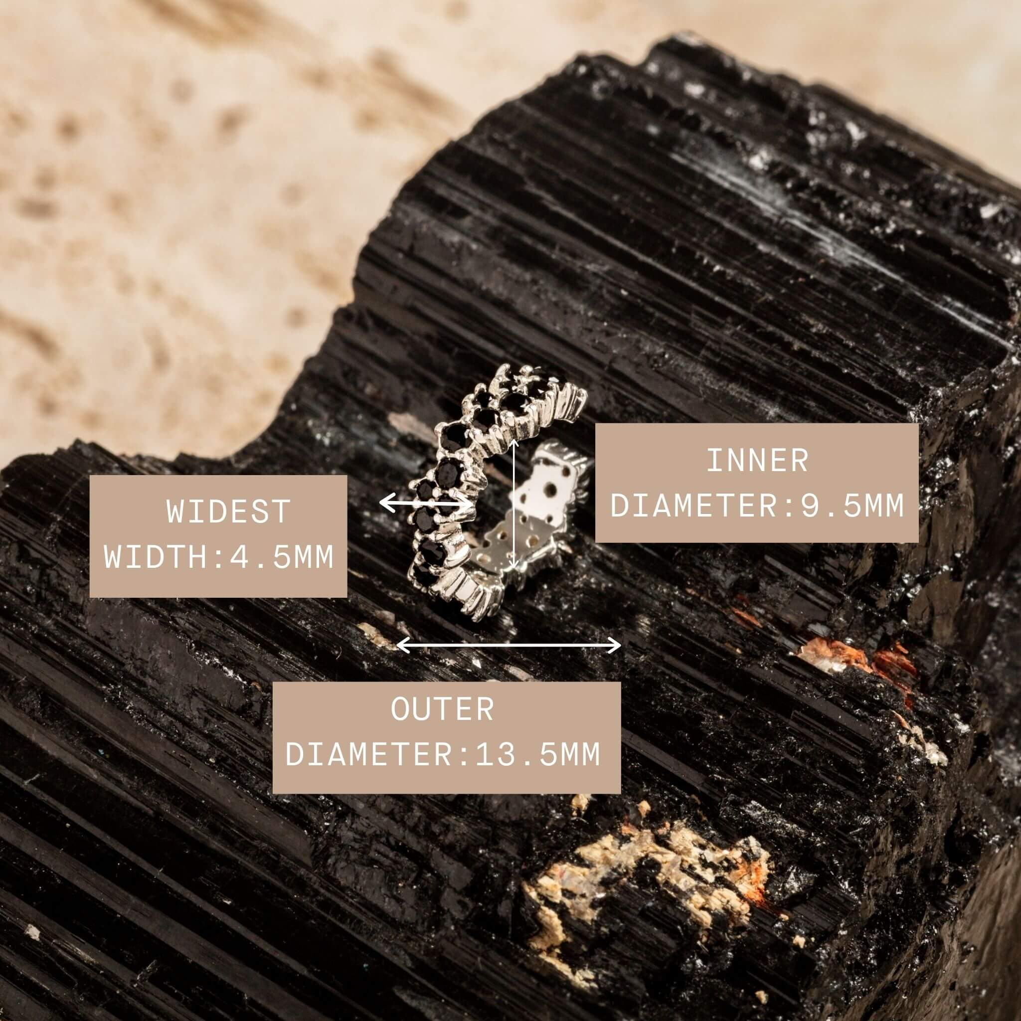 "The size and shape are perfect - very dainty and also comfortable to wear. I love the black stones, I haven’t been able to find similar elsewhere." Evangeline