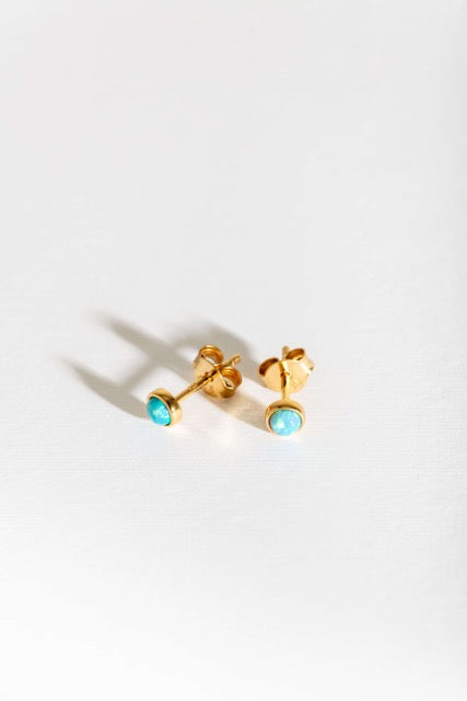 Upgrade your earring collection with pretty opal gold stud earrings. The mini gold vermeil earrings are little pieces of luxury filled with radiant bright blue opals. Everyday jewellery made special.