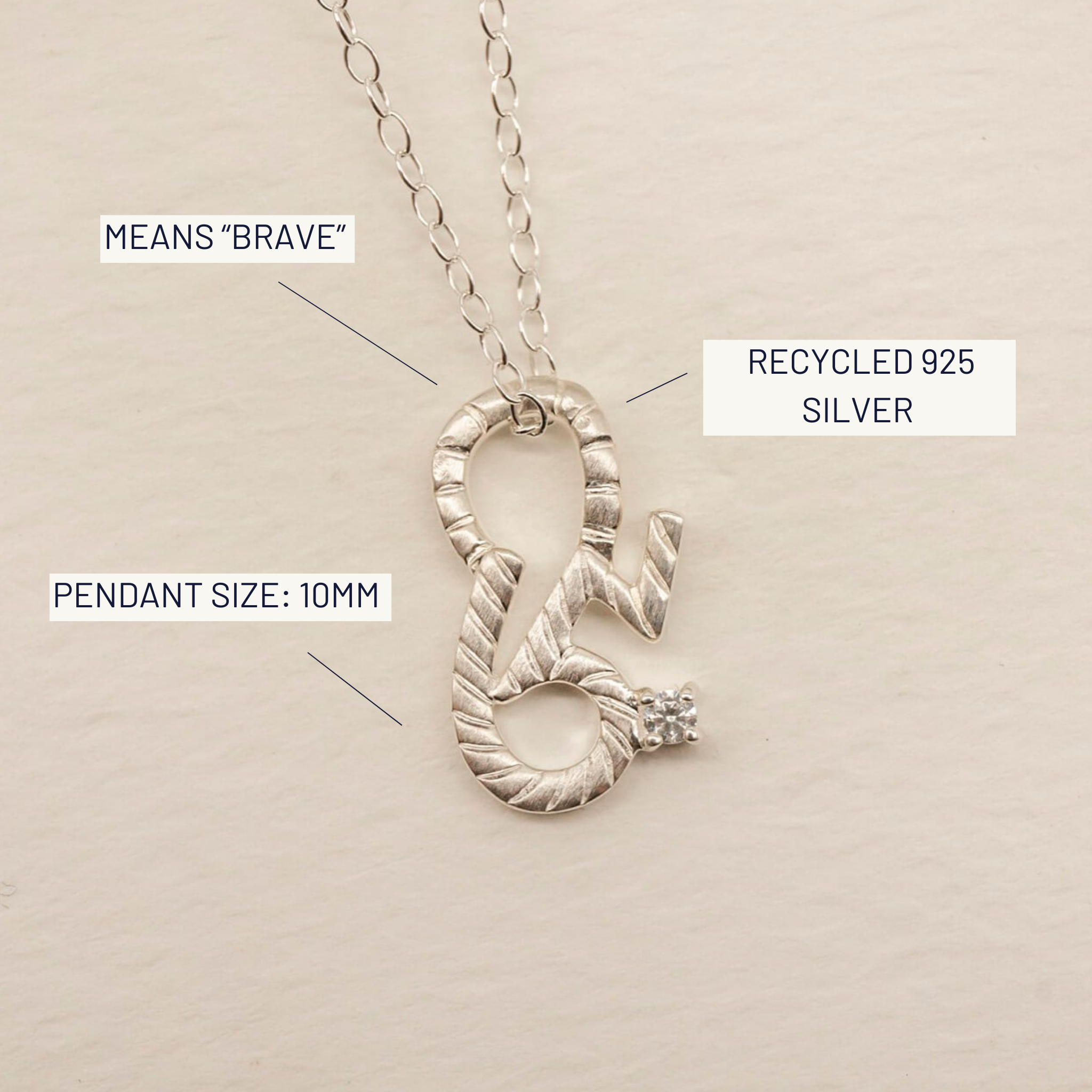This beautiful looping charm has a hidden meaning: it’s also the Shorthand symbol for 'Brave'. Wear this silver secret message charm necklace for a loving dose of motivation, inspiration, and “You can do this”.