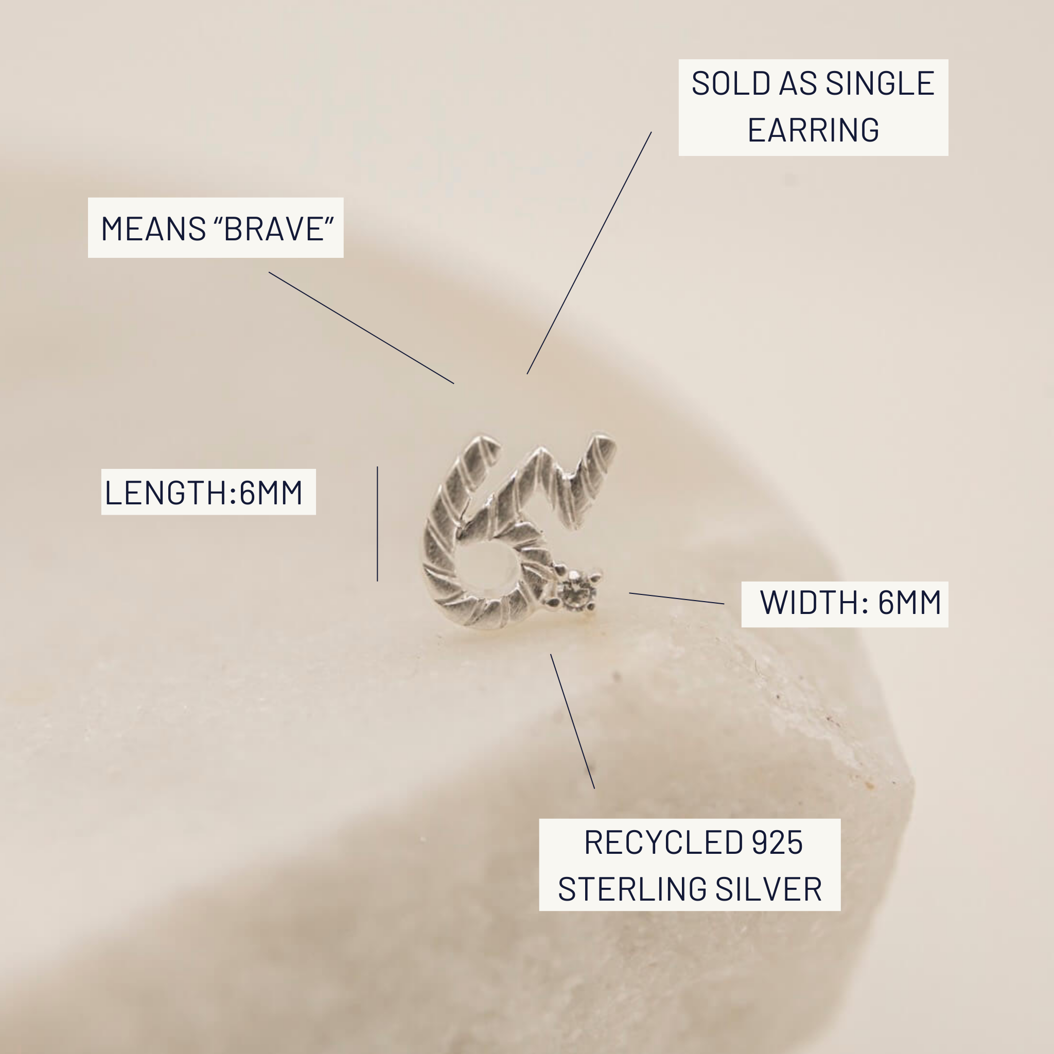 Featuring the Shorthand symbol for bravery and finished with a sparkling Cubic Zirconia, this Brave Shorthand earring is designed to catch your eye and capture your heart.