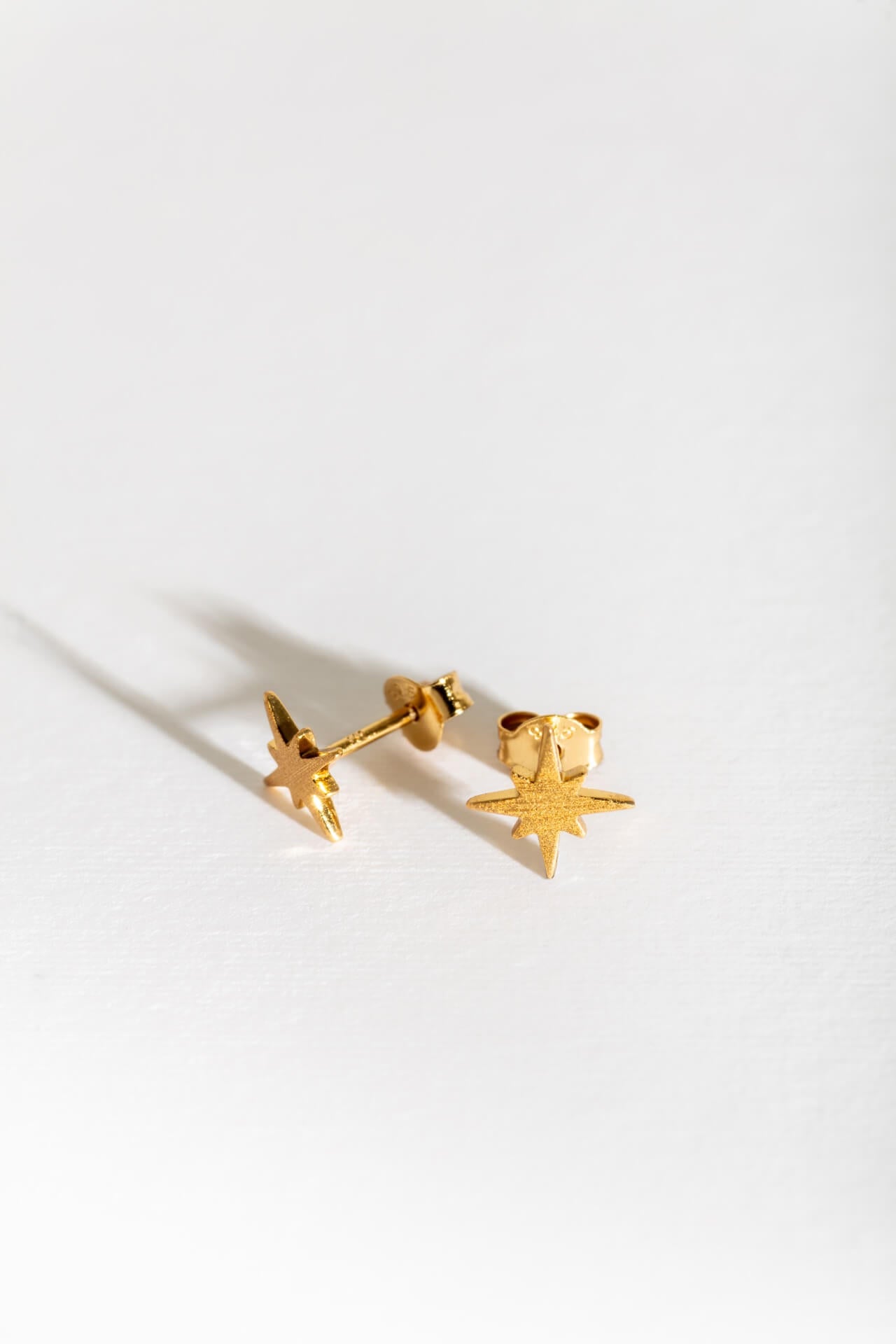 Reach for the stars with these timeless North Star gold vermeil studs. With a brushed finish these celestial delights are an easy way to add some glamour to your everyday look.