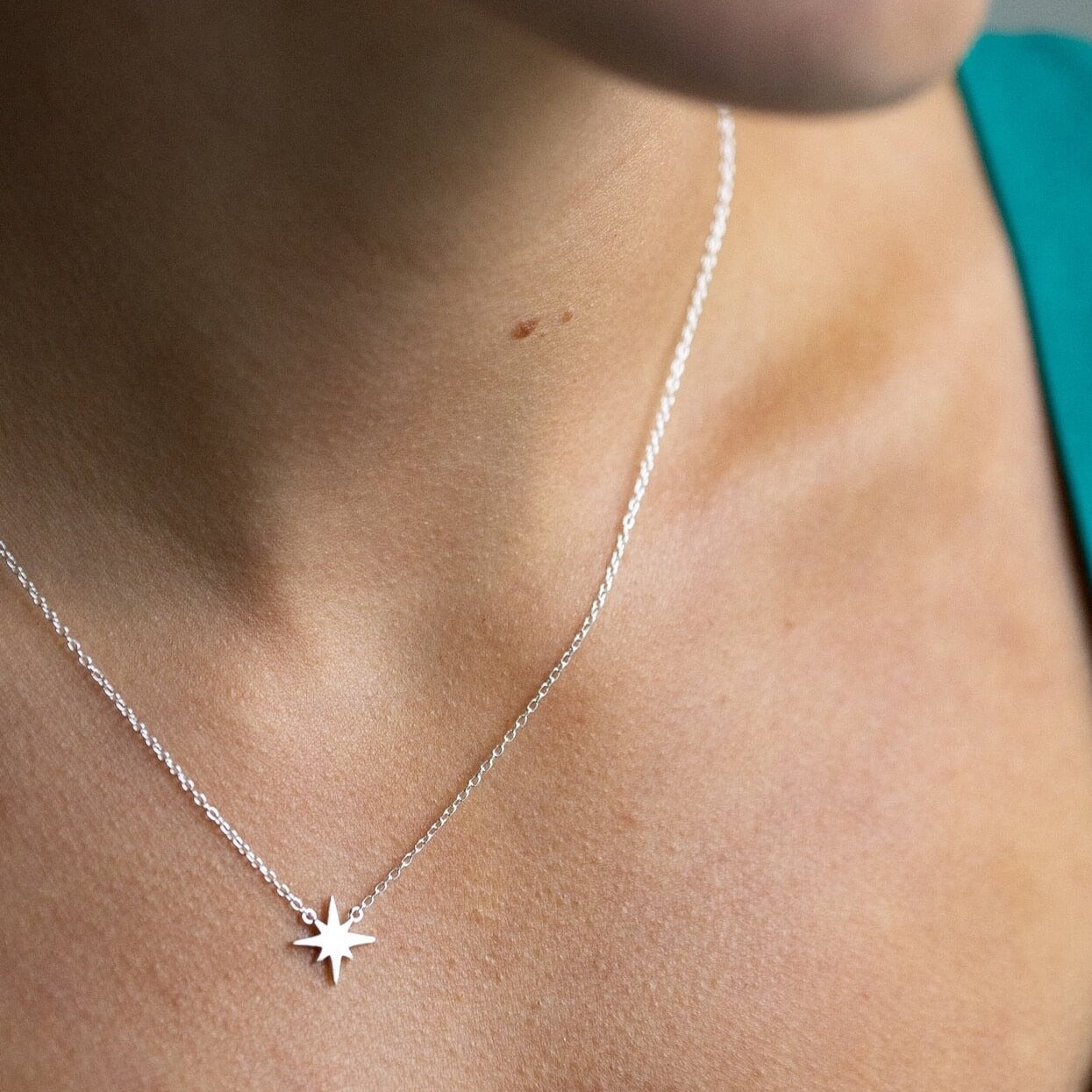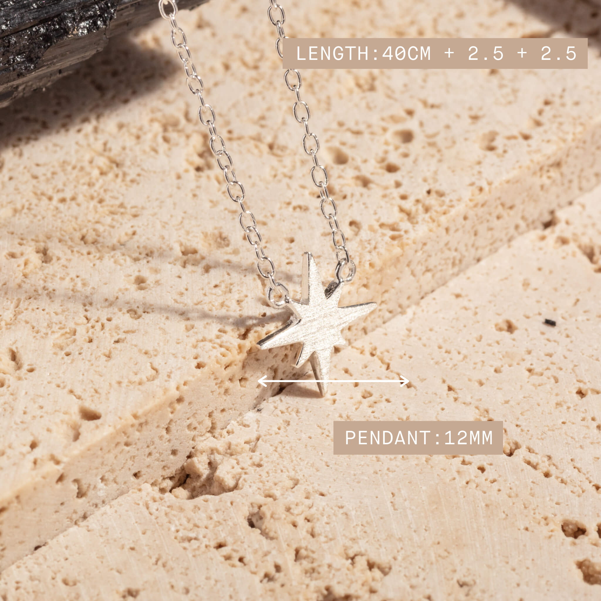 Shine bright like the star you are with this dainty silver charm necklace. The brushed North Star takes centre stage but its minimalistic style works with every outfit.