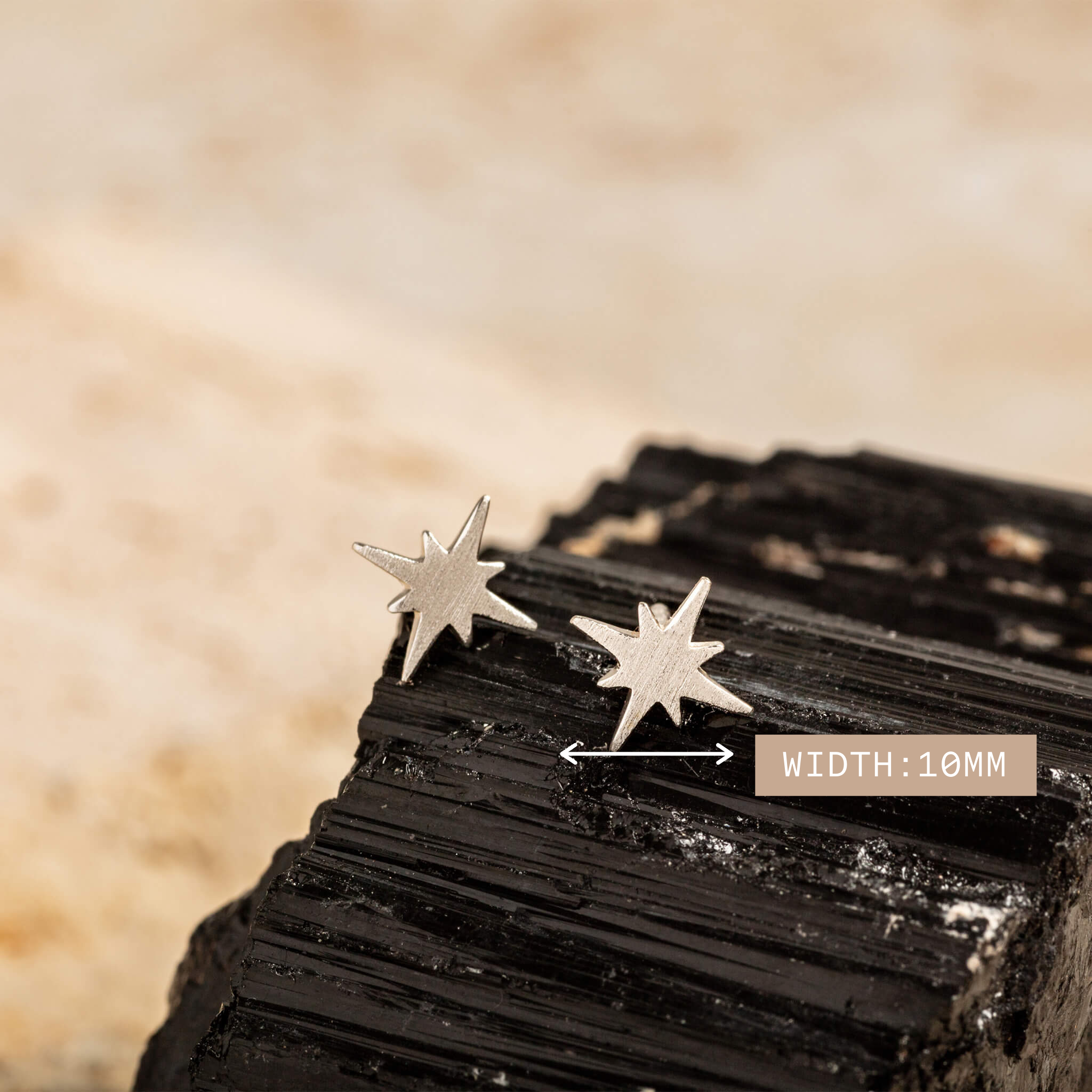 Let these North Star earrings be your guide. Made to add effortless glamour to every single item in your wardrobe these striking brushed silver star studs are destined to delight.