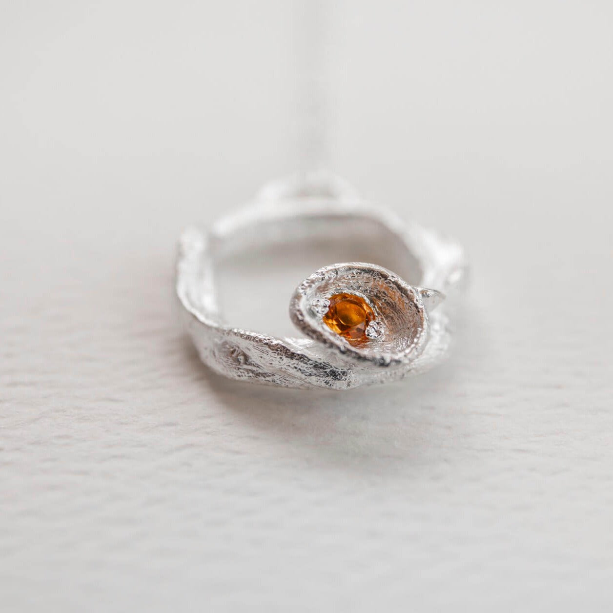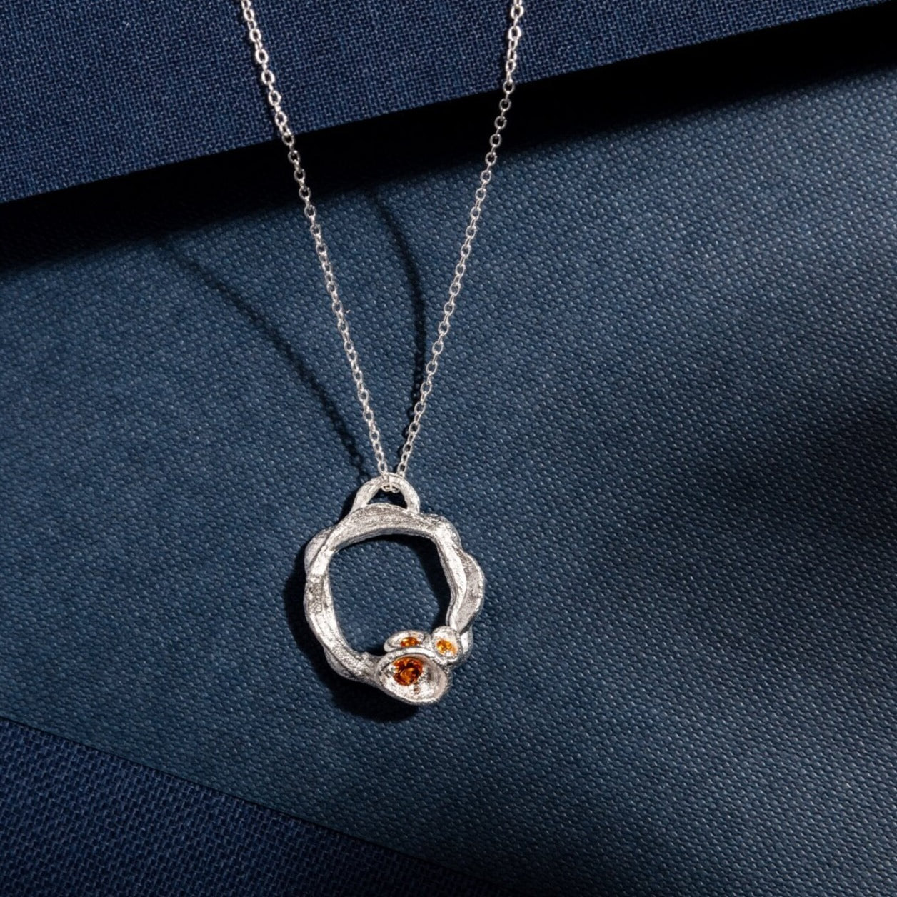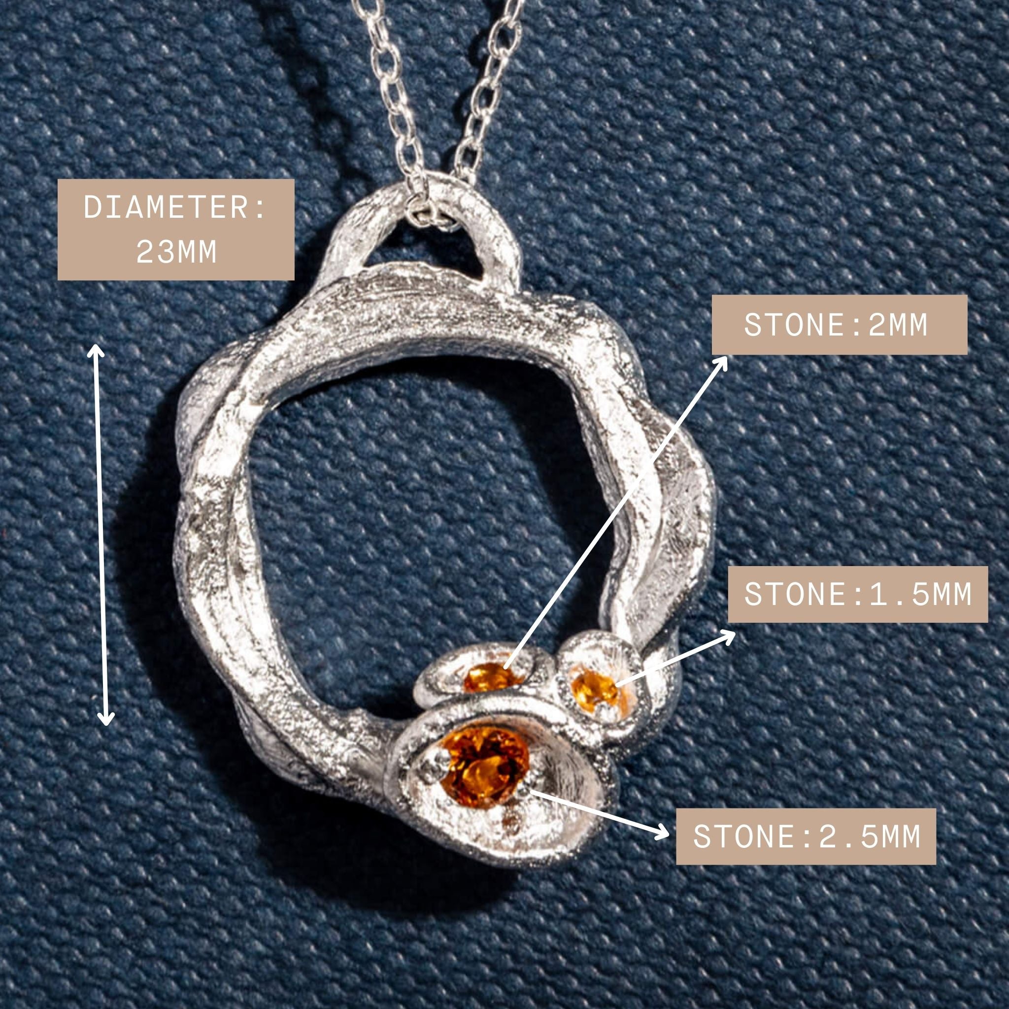 Stand out from the crowd with design-led luxurious jewellery you will want to wear on repeat. Our statement citrine gemstone and silver necklace is a striking piece that will get everyone talking. Endlessly flattering and versatile, the three burnt orange gemstones nestle in raised cup lichen on a tactile branch pendant. Designed to take the beauty of nature and elevate it to a modern heirloom that you will treasure.