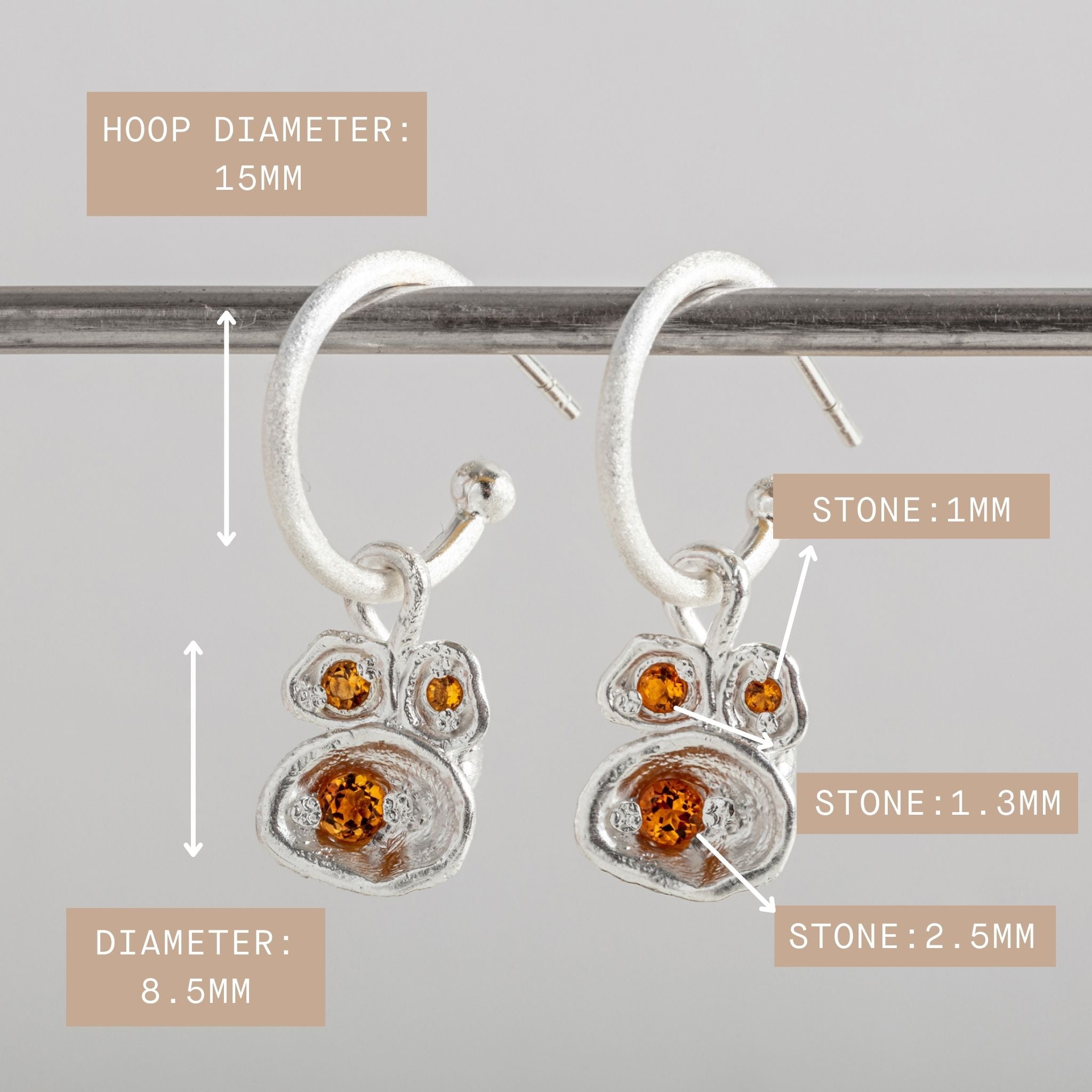 Lightweight and endlessly flattering, the three burnt orange gemstones nestle in organic removable gold charm and sit on a minimalist silver hoop. Designed to take the beauty of nature and elevate it to a modern heirloom that you will treasure.