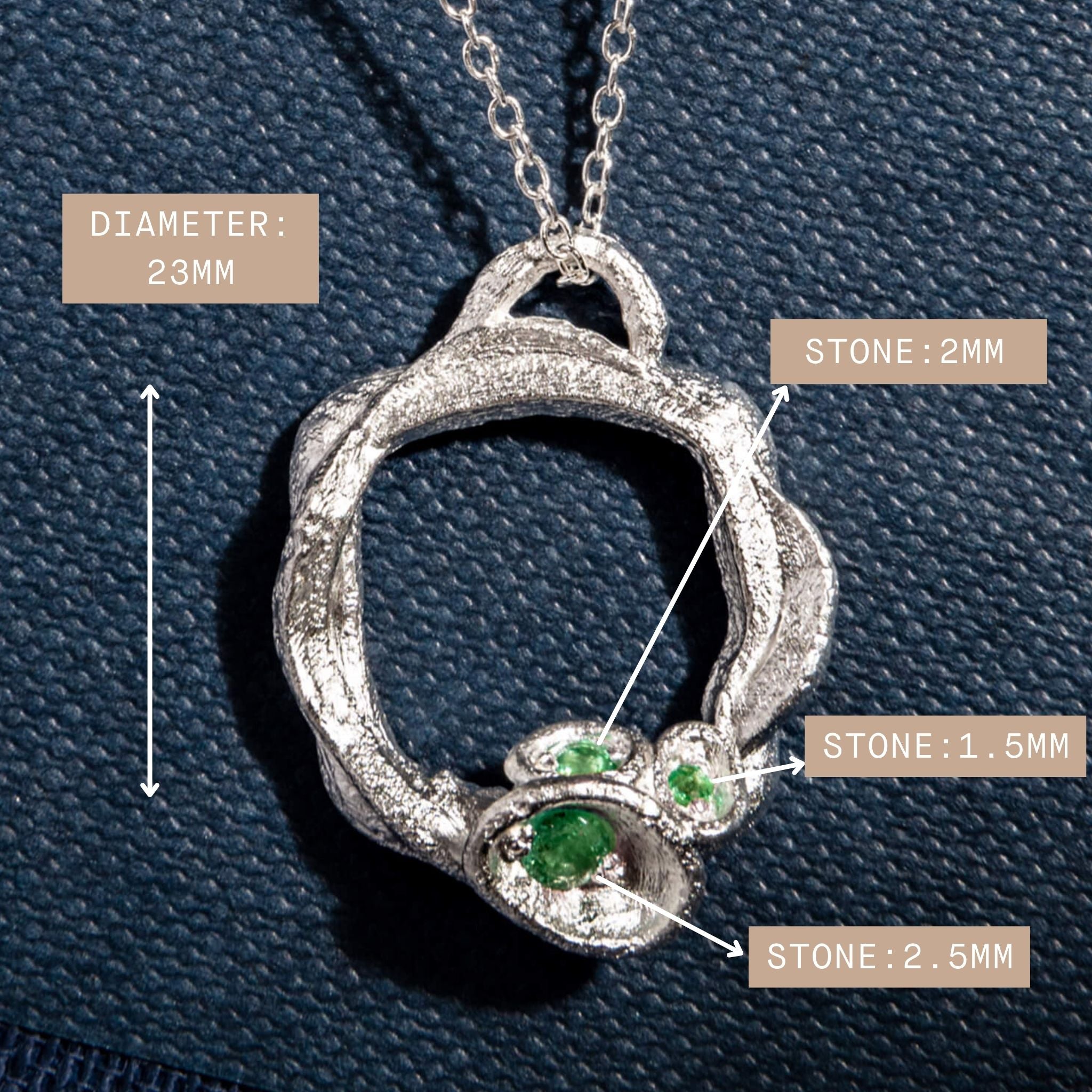 Our emerald and silver pendant necklace is a stunning take on birthstone jewellery and designed to stand out from the crowd. Gift the striking precious gemstone for May birthdays. Inspired by escaping on woodland walks this luxurious statement necklace is a timeless classic that will always make you feel special.