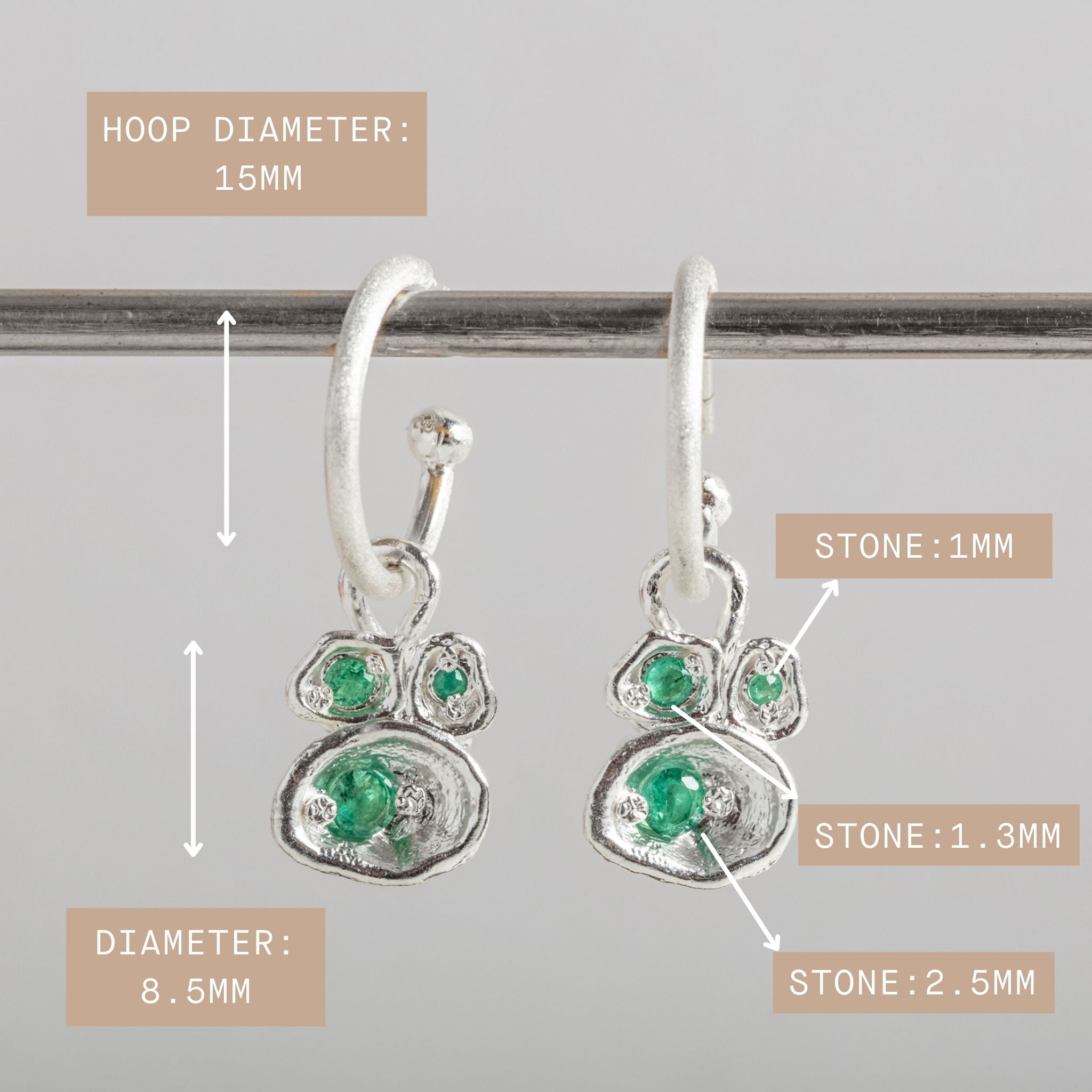 Look great, feel great in these stunning real emerald and silver hoop earrings. Perfect for gifting for May birthdays these gemstone charm hoops are destined to become modern heirlooms you will treasure for years to come. Wear for dressing up or doing nothing.