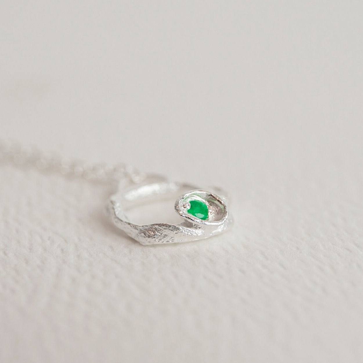 Introduce feel-good luxury with a twist to your jewellery collection with this silver branch and emerald green necklace. Wear it as a birthstone necklace to celebrate May birthdays or to channel the greats from Cleopatra to Elizabeth Taylor.
