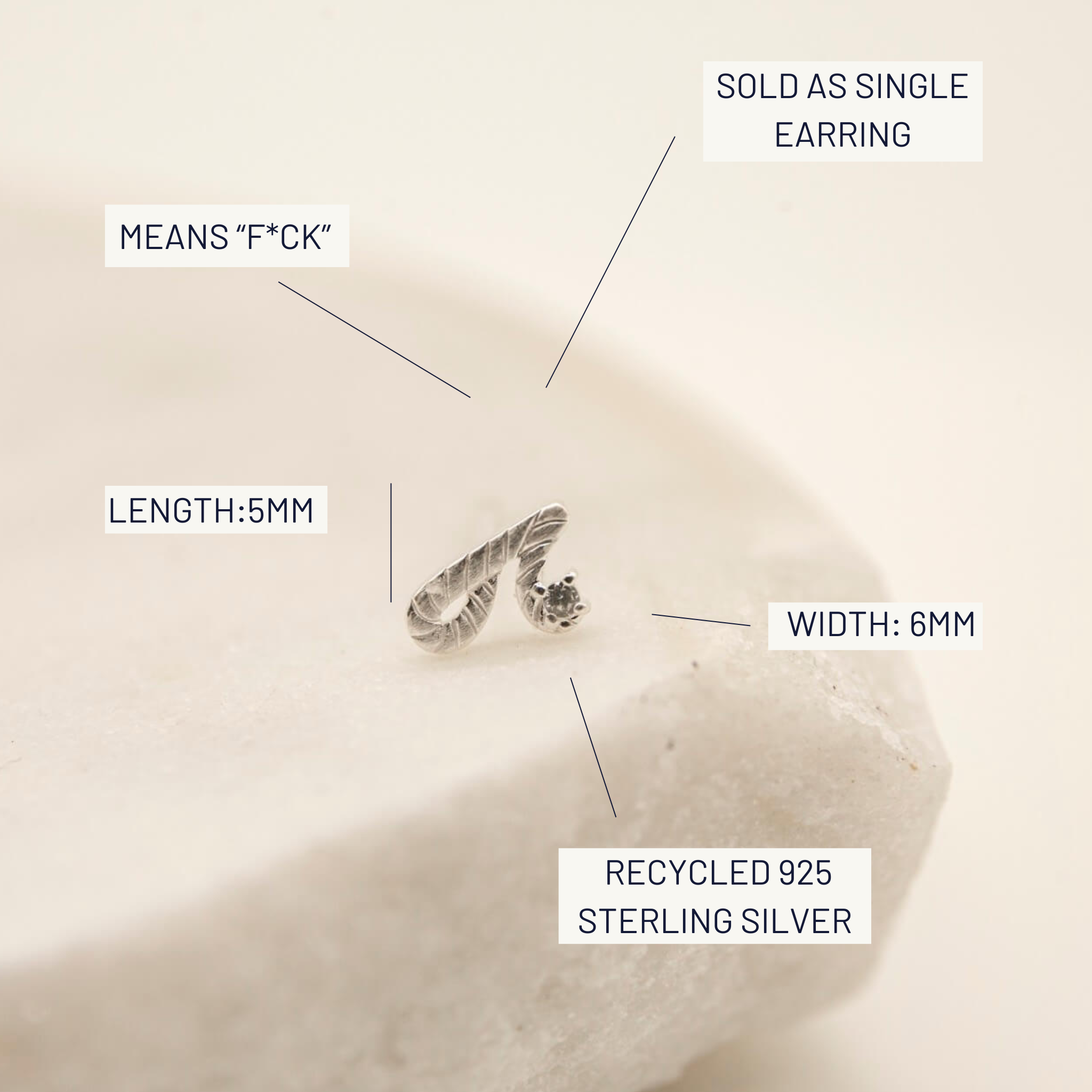 It's not big but it is clever. Wear this dainty silver stud earring, featuring the Shorthand symbol for the F-word, to express your not-safe-for-work feelings with smug, safe-for-work pride.
