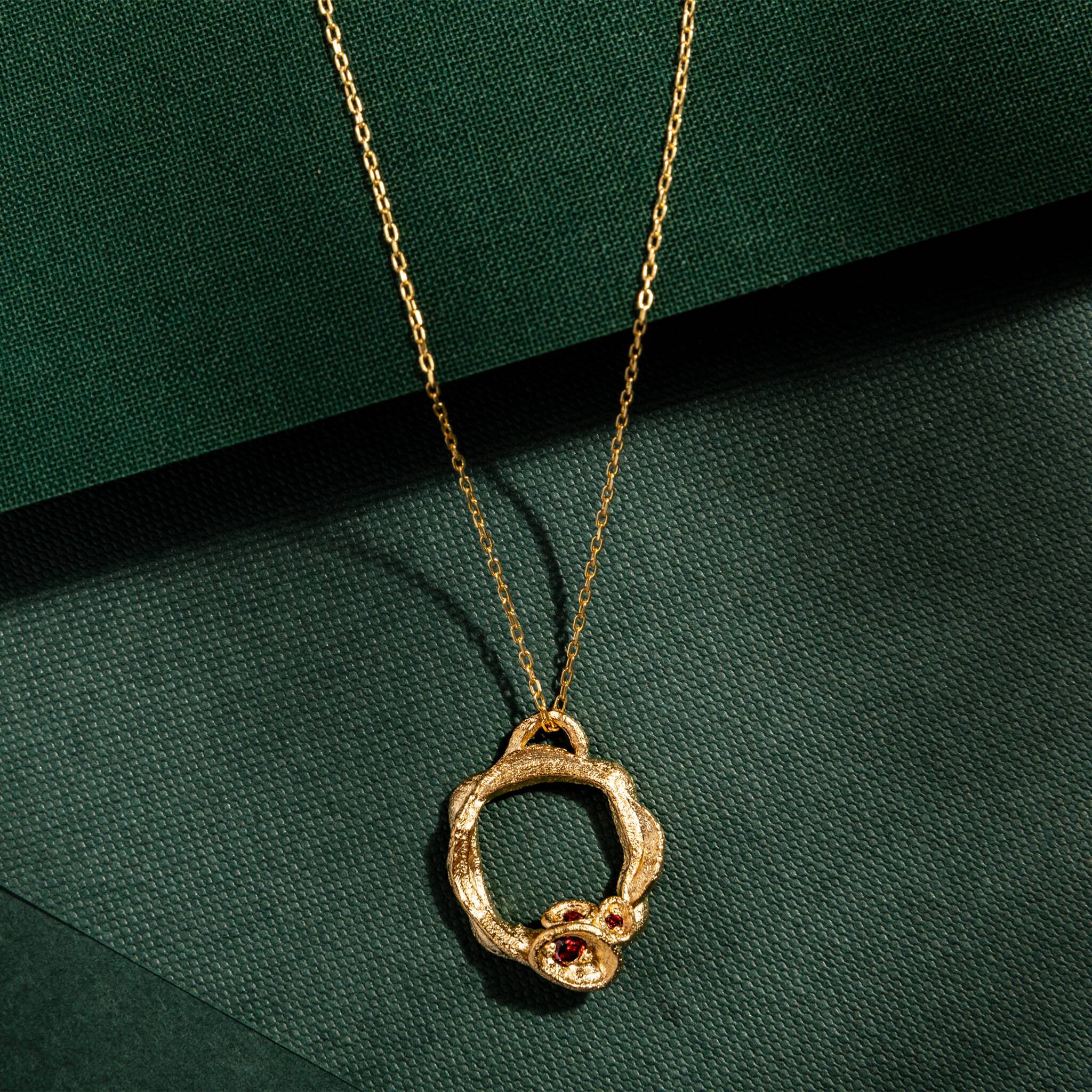 Treasure Me Forever. Make gifting personal with the striking garnet gemstone necklace. Nestled on a gold branch pendant these ethically sourced gemstones are filled with meaning and designed to empower your everyday. Representing January birthdays, what this necklace close to your heart.