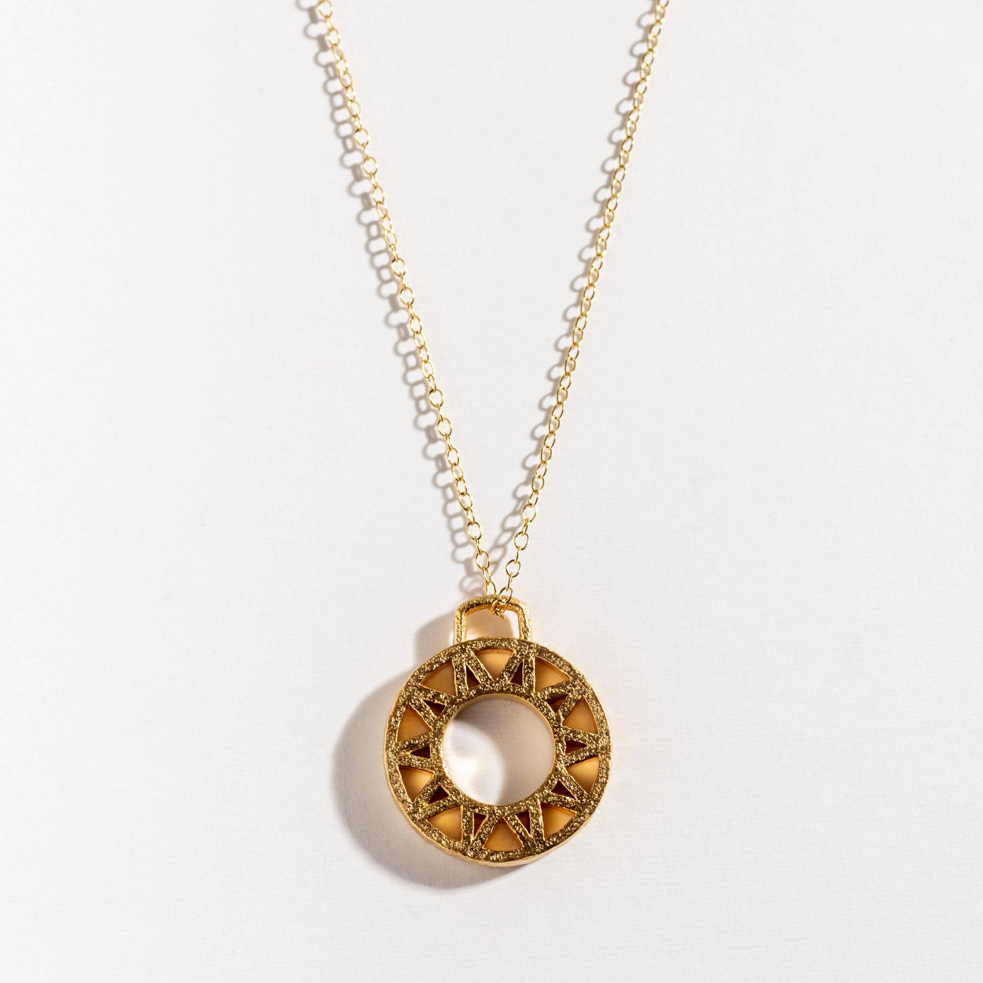 Create connections in life with this eye-catching 14k gold vermeil geometric disc necklace. Expertly handcrafted by artisans in recycled metals, this necklace is designed to make you feel good and flatter everything you wear.