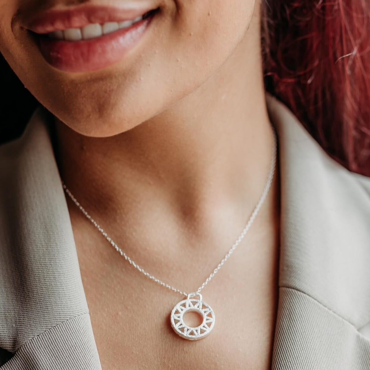 Turn heads with this bold silver geometric necklace. Responsibly handcrafted from 100% recycled silver, this striking disc necklace has a rich and luxurious finish which is designed to make you look great and feel special.