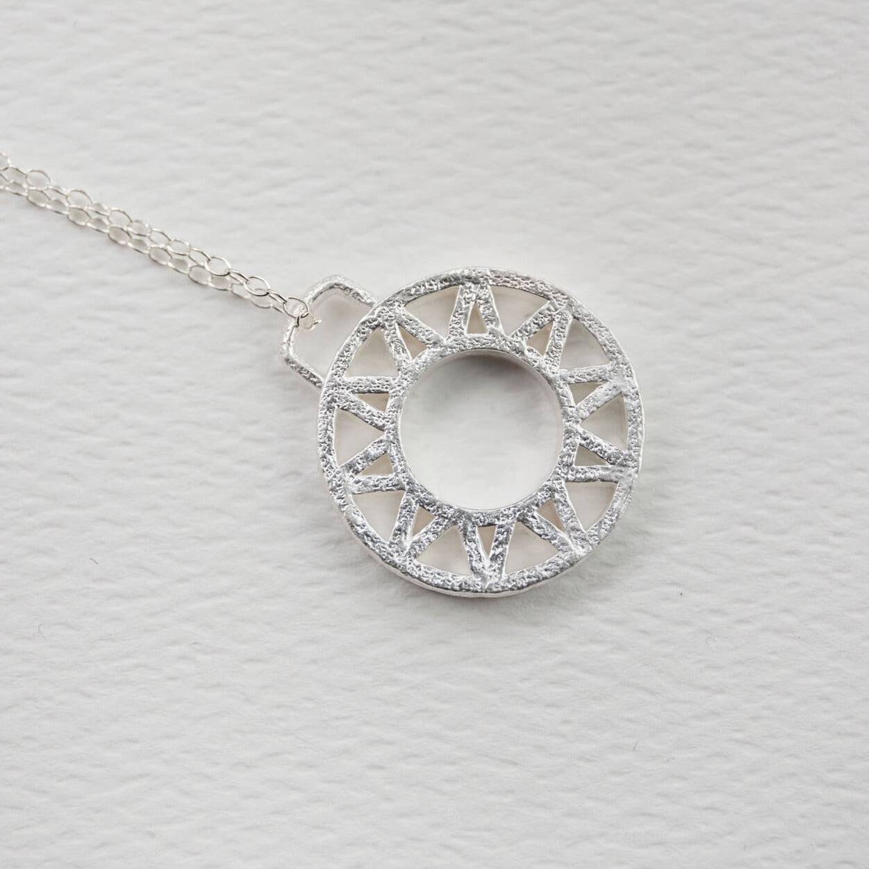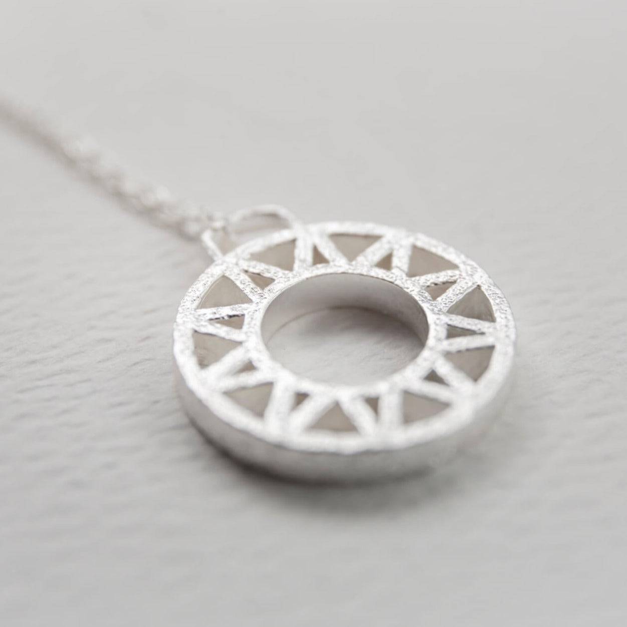 Symbolising progress, connection and stability, this necklace was inspired by the geometric architecture of the Tyne Bridge, Newcastle.