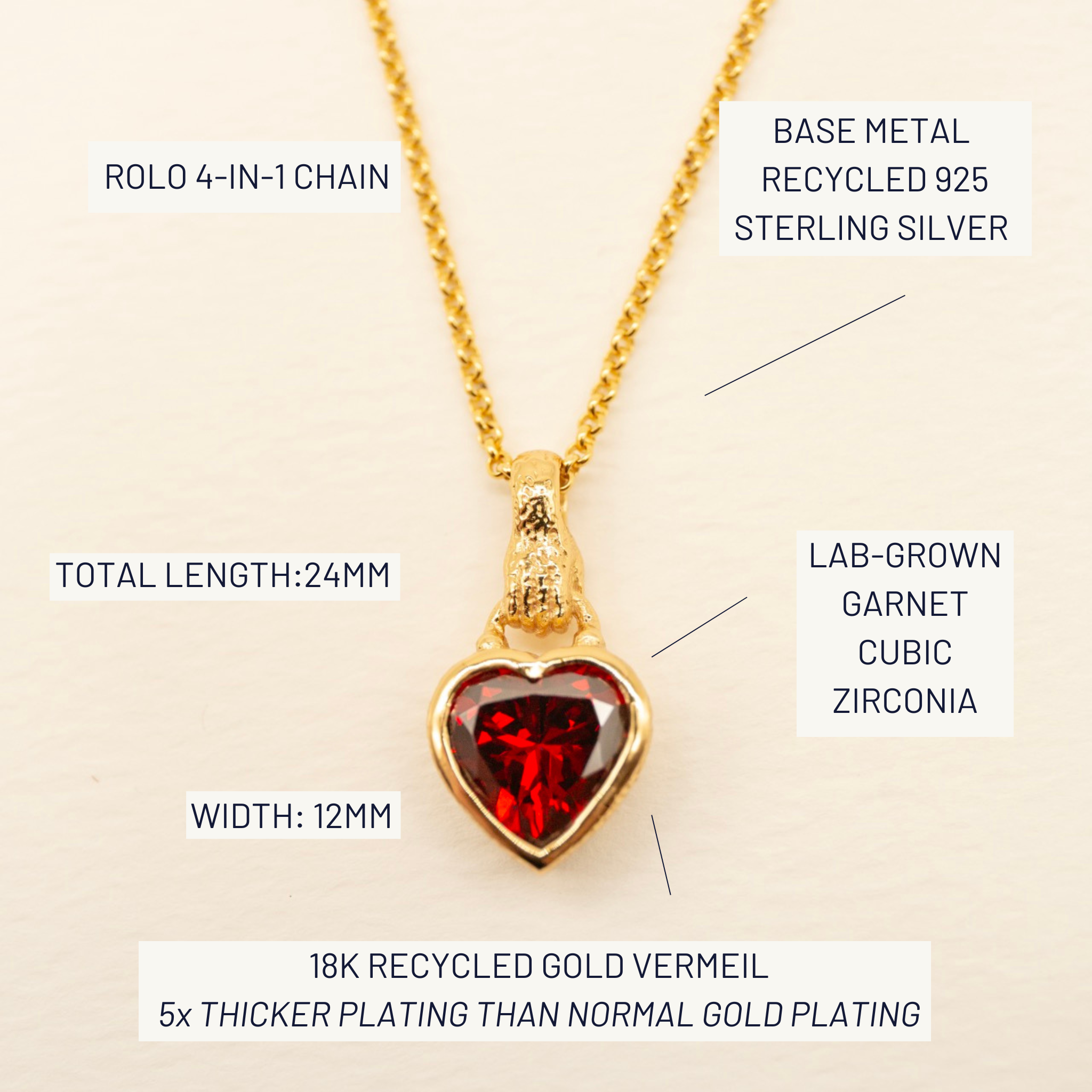 For lovers of dramatic jewellery this dark garnet CZ heart charm necklace will get all the compliments.