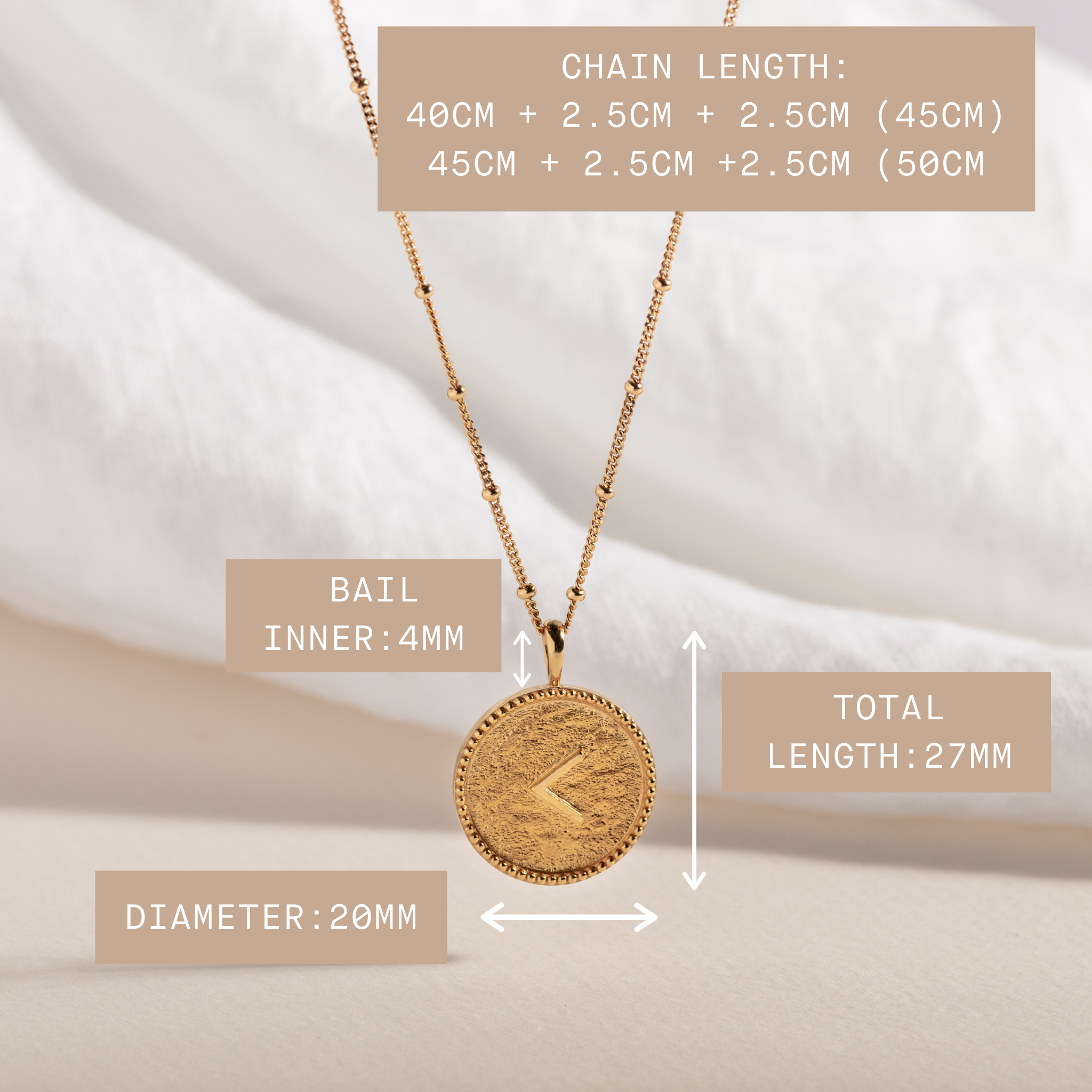 Gift yourself a little piece of luxury gold vermeil jewellery that will inspire you every day with our symbolic medallion necklace. This unique twist on the ancient coin necklace is finished with the shorthand symbol which has the dual meaning of Kind or Knowledge. We all need these in our lives.