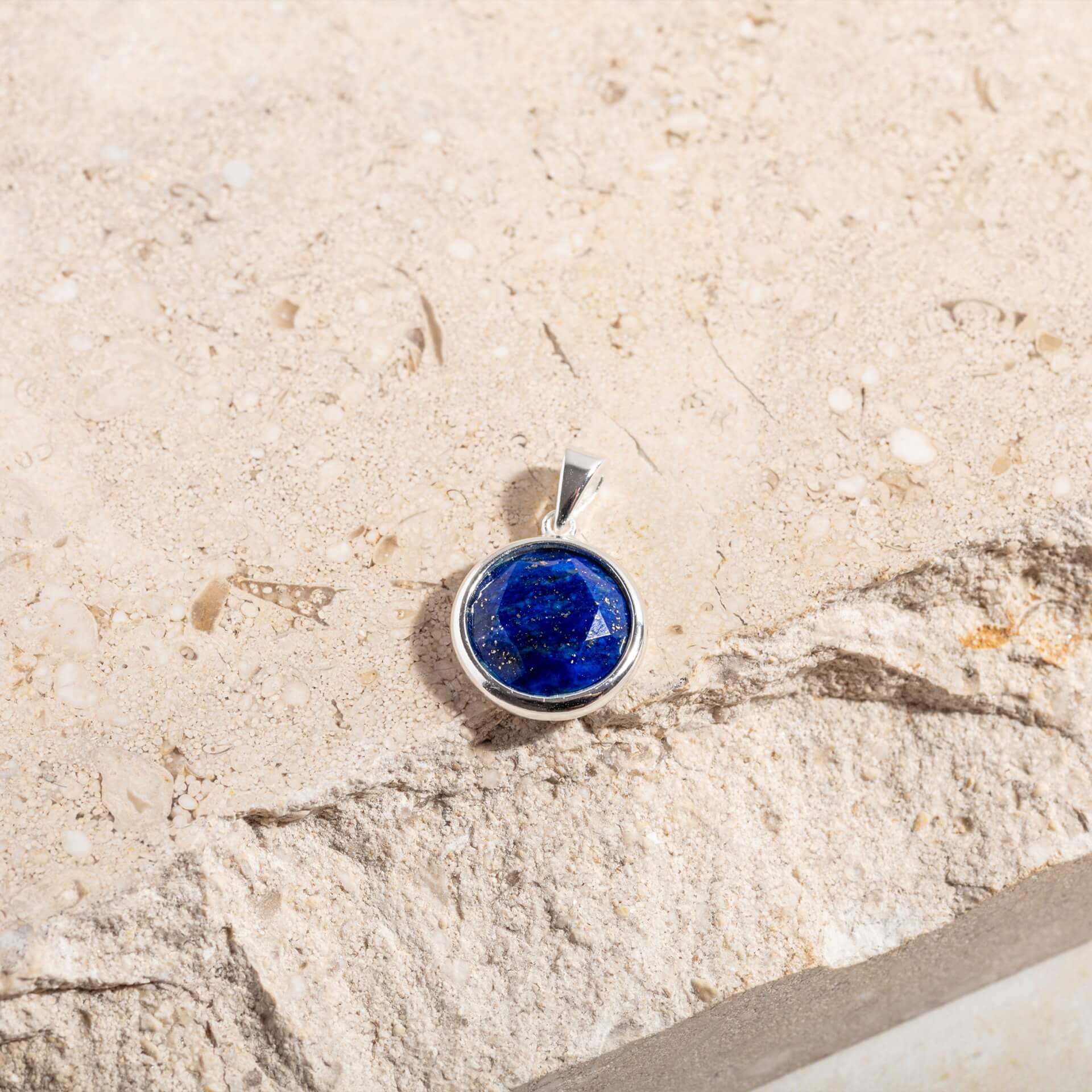 Add some drama with the stunning lapis lazuli gemstone pendant. The deep blue stone is flecked with gold and adds an air of magic to any outfit. Choose either from either gold vermeil or recycled silver. Slip this circle-cut gemstone onto your favourite chain.