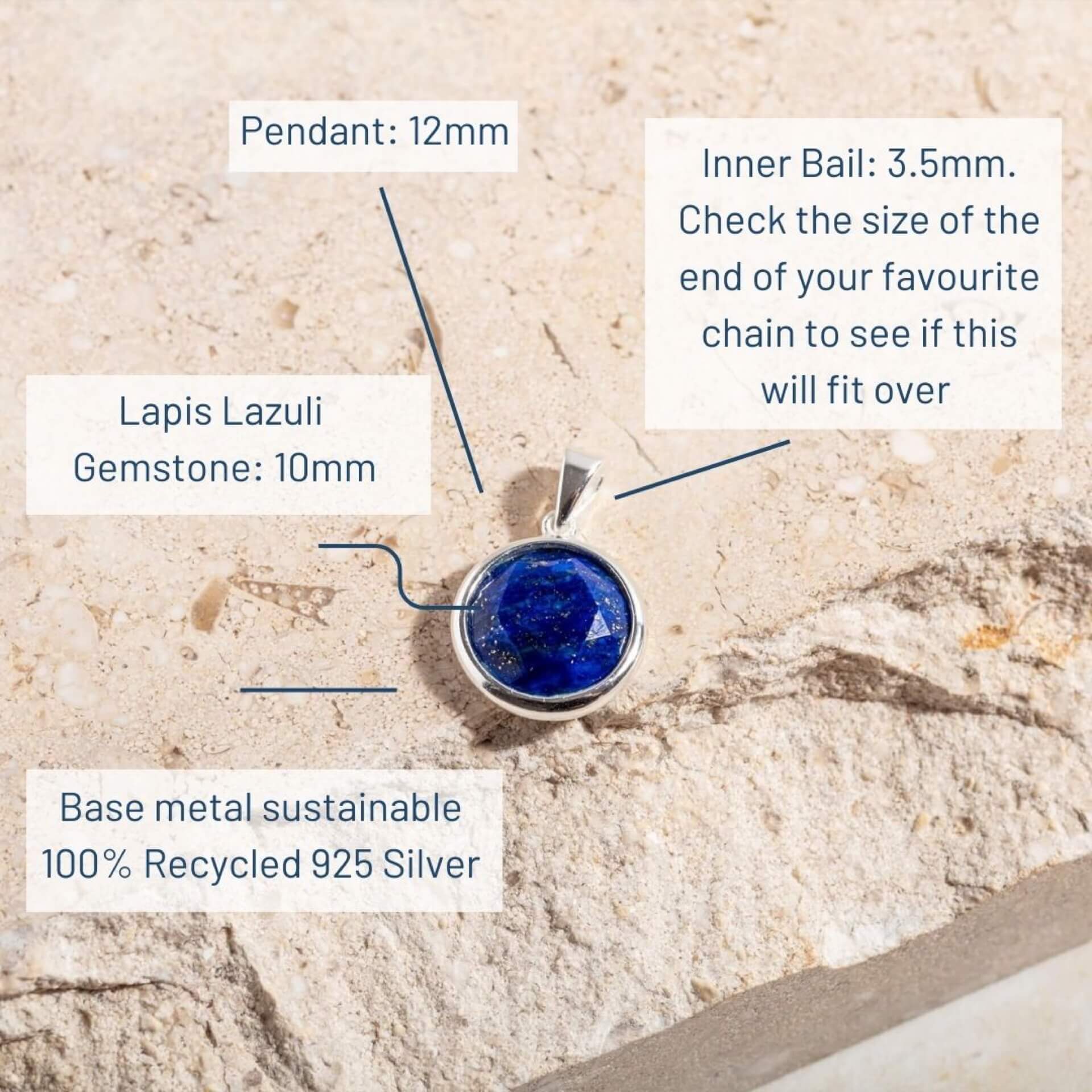 - Pendant Size: Pendant 12mm, Inner Gemstone 10mm