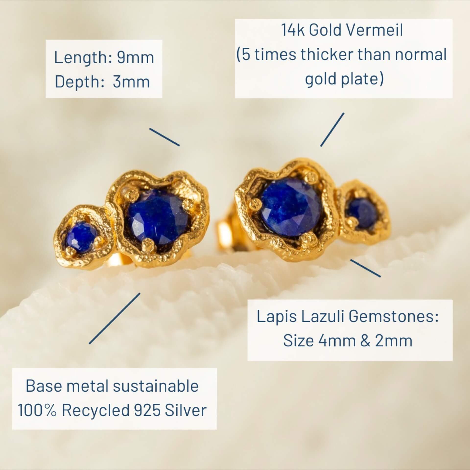 - Materials: Made with a solid base of 100% certified recycled 925 silver, plated with 14k gold vermeil (5x thicker than standard gold plating) and ethically sourced real lapis lazuli gemstones for sustainable jewellery you can feel good about.