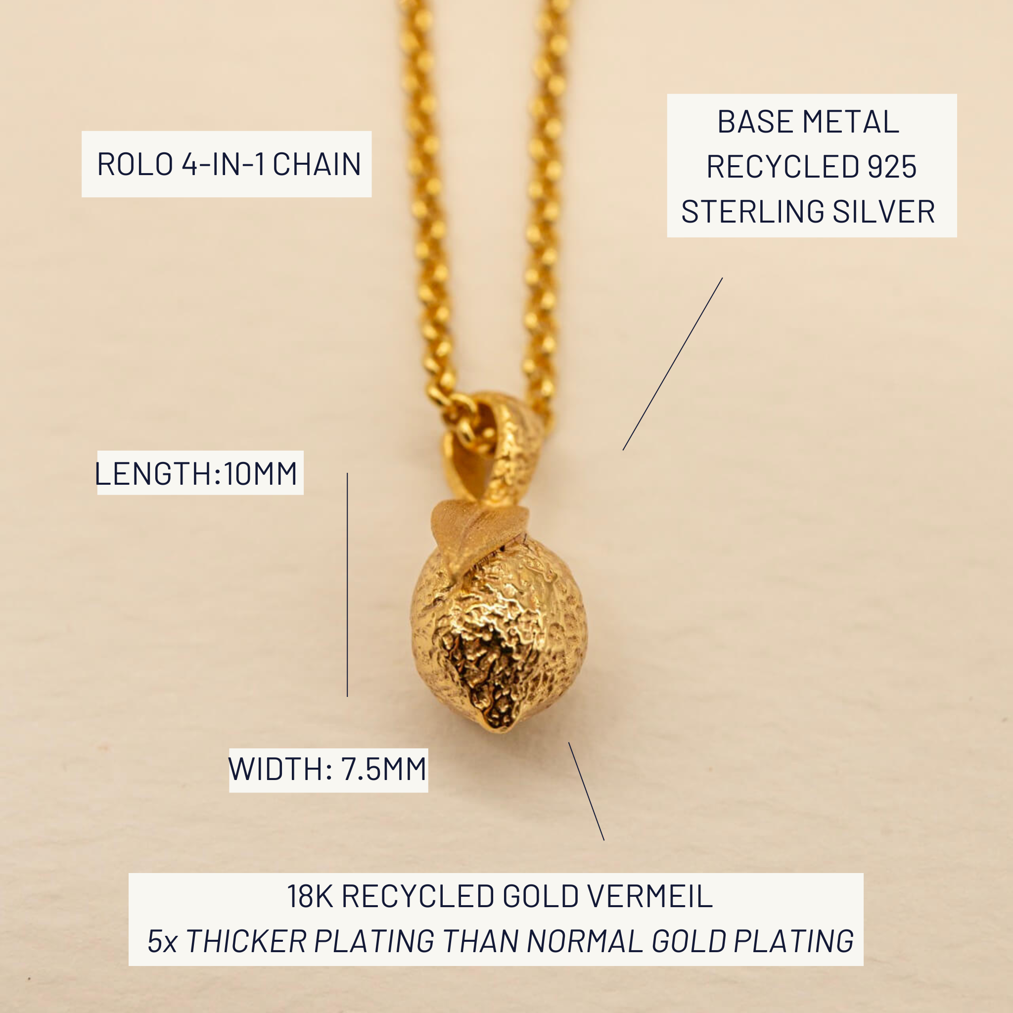 Add a zesty citrus burst to your necklace collection with this handcrafted lemon charm necklace. Made with 18k recycled gold vermeil, this delightful charm necklace will add some pep to your step everyday.