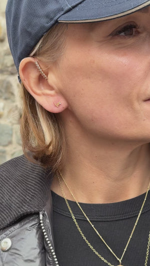 To be seen is to be loved; and to be worn is to be reminded of this, always. Shaped like the Shorthand symbol for 'Loved', this dainty gold vermeil stud earring is a subtle yet stunning message for yourself.