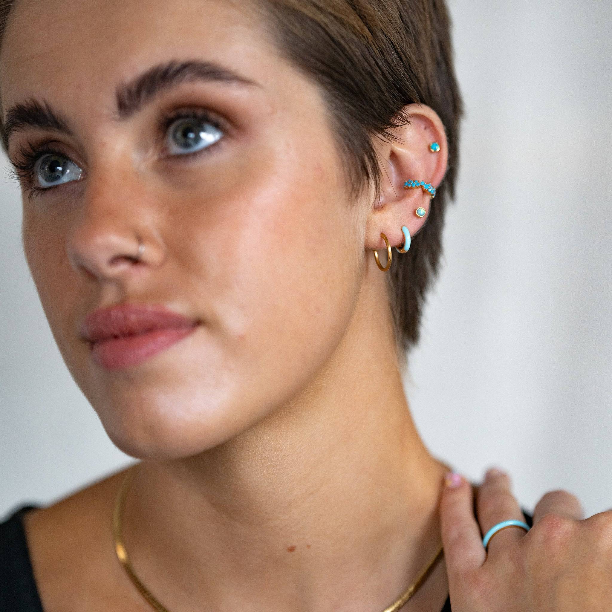 A classic hoop is a versatile must-have for every jewellery collection. Get the polished look in seconds with this brushed warm gold hoop earring. It looks great solo and can be the base for the ear stack of your dreams.