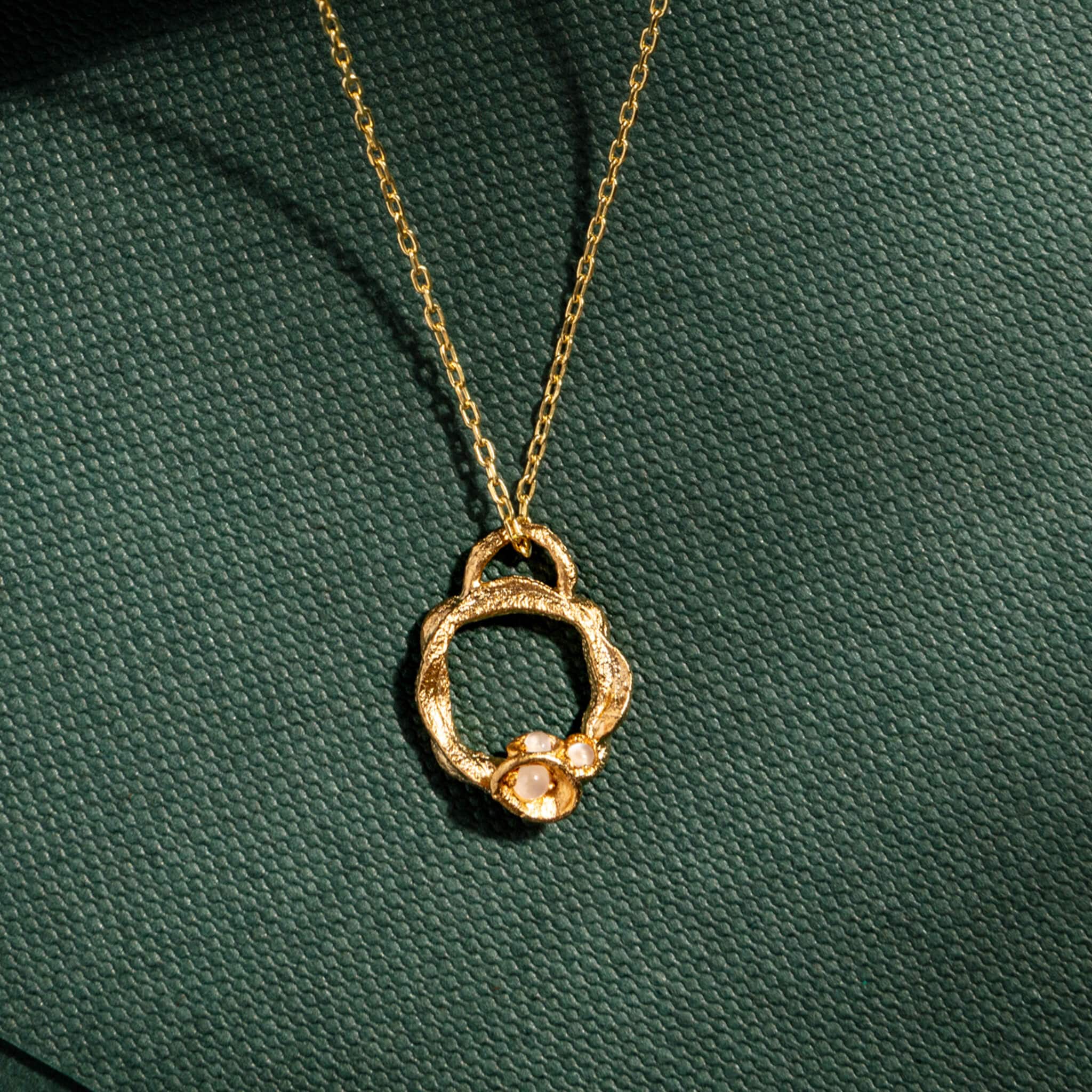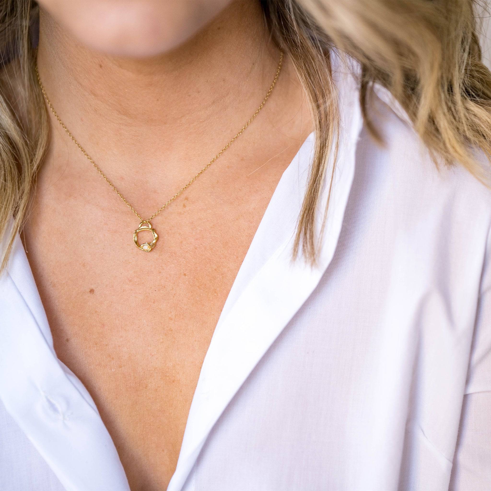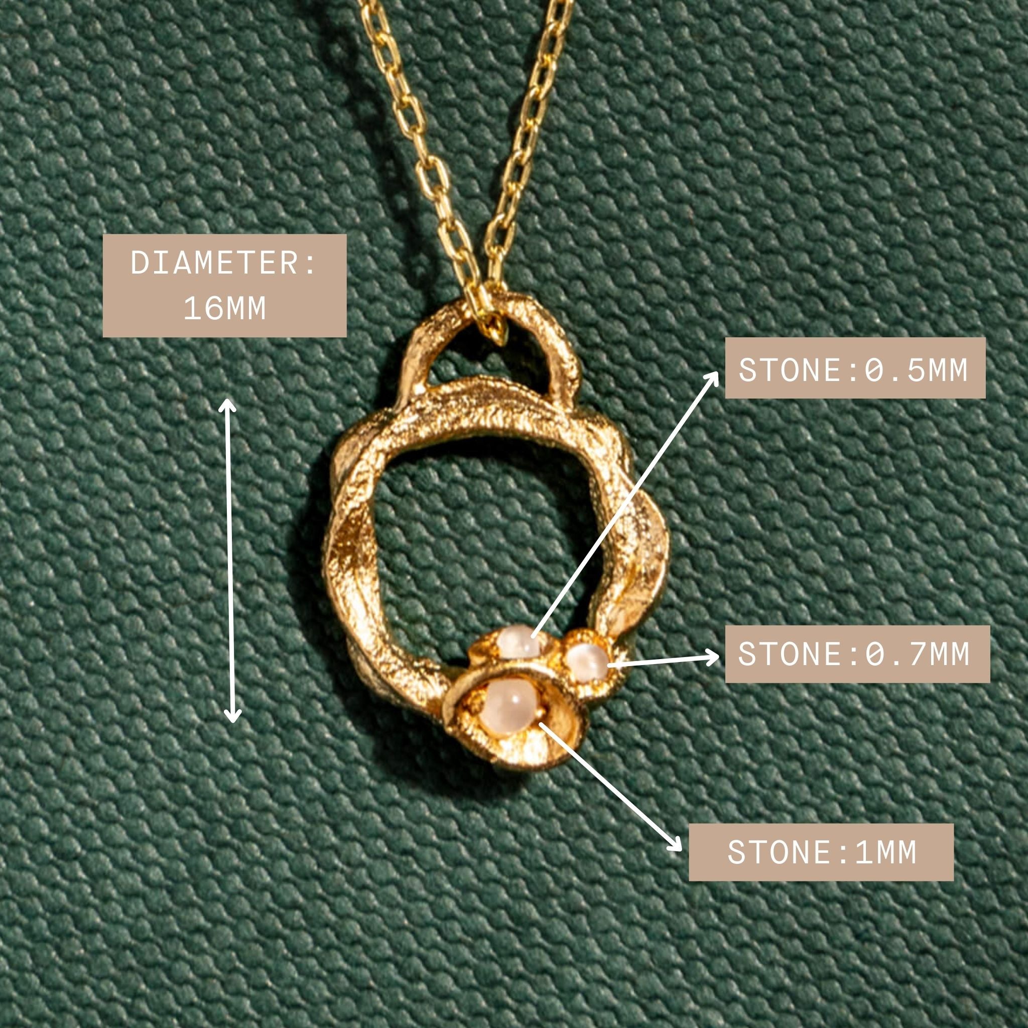 Add an air of magic to every day with this ethereal twist branch gold necklace with stunning moonstone gems. Inspired by one of nature's most important and resilient creations, the lichen. This birthstone necklace connects us to nature and our place in the world.
