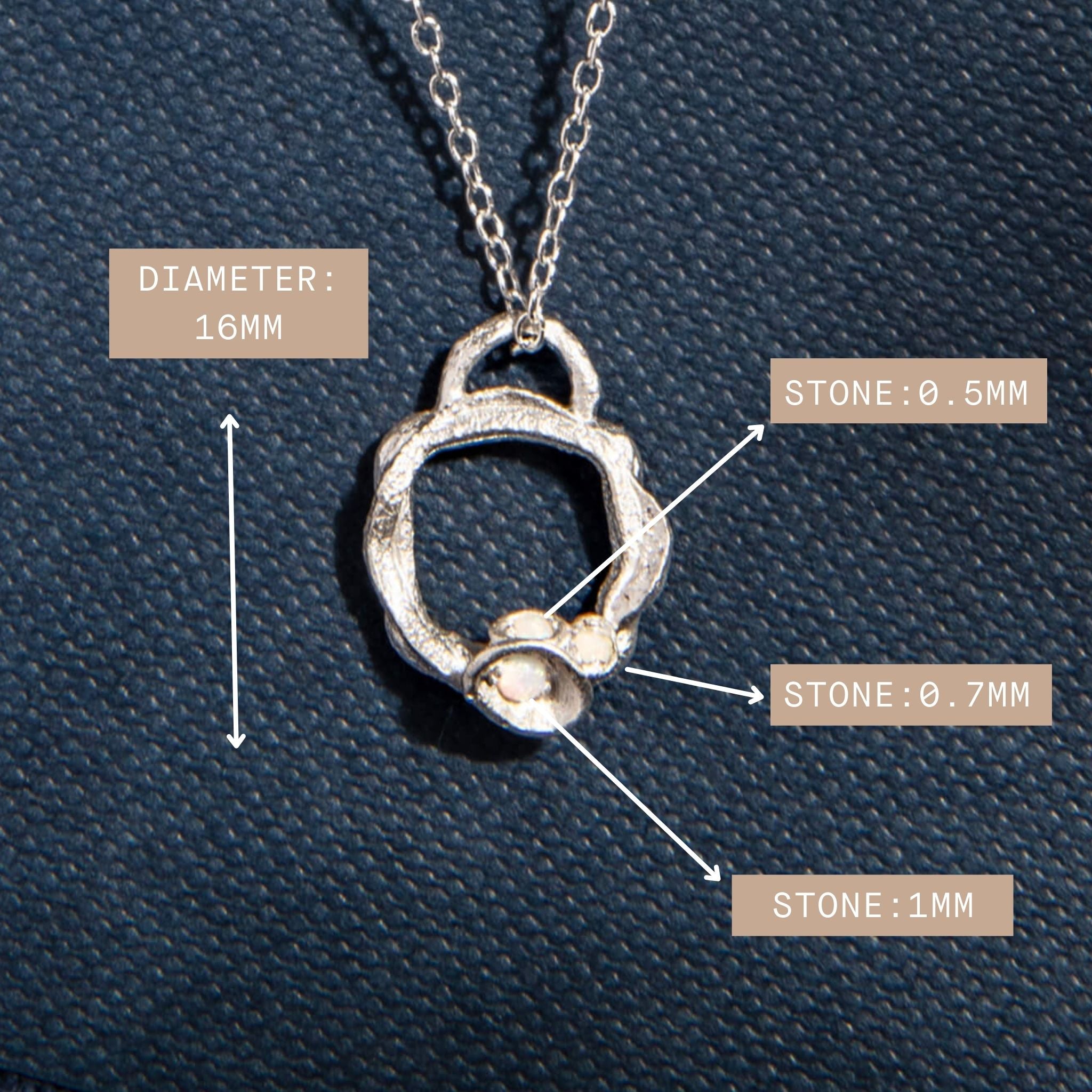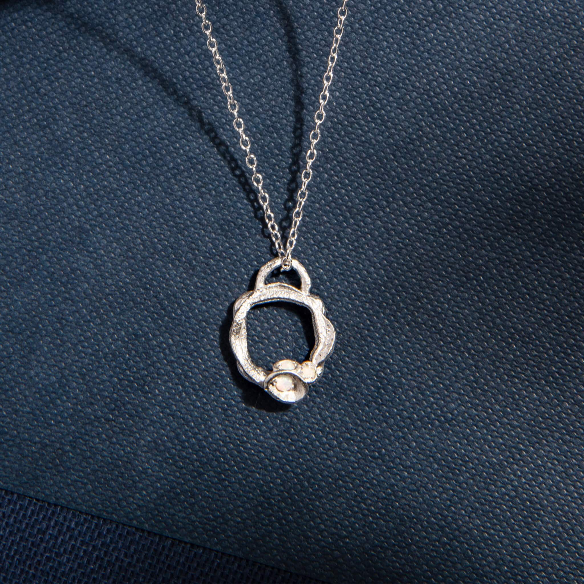 Wear the rainbow with this pretty opal and silver pendant necklace. The radiant gemstone necklace subtly shows different colours every time it catches the light making for jewellery that dazzles and delights. Set on a branch circle and nestled in stunning cup lichen the opal gemstones link us with the natural world. Representing hope and truth, the birthstone of October, creates a timeless necklace to be cherished.