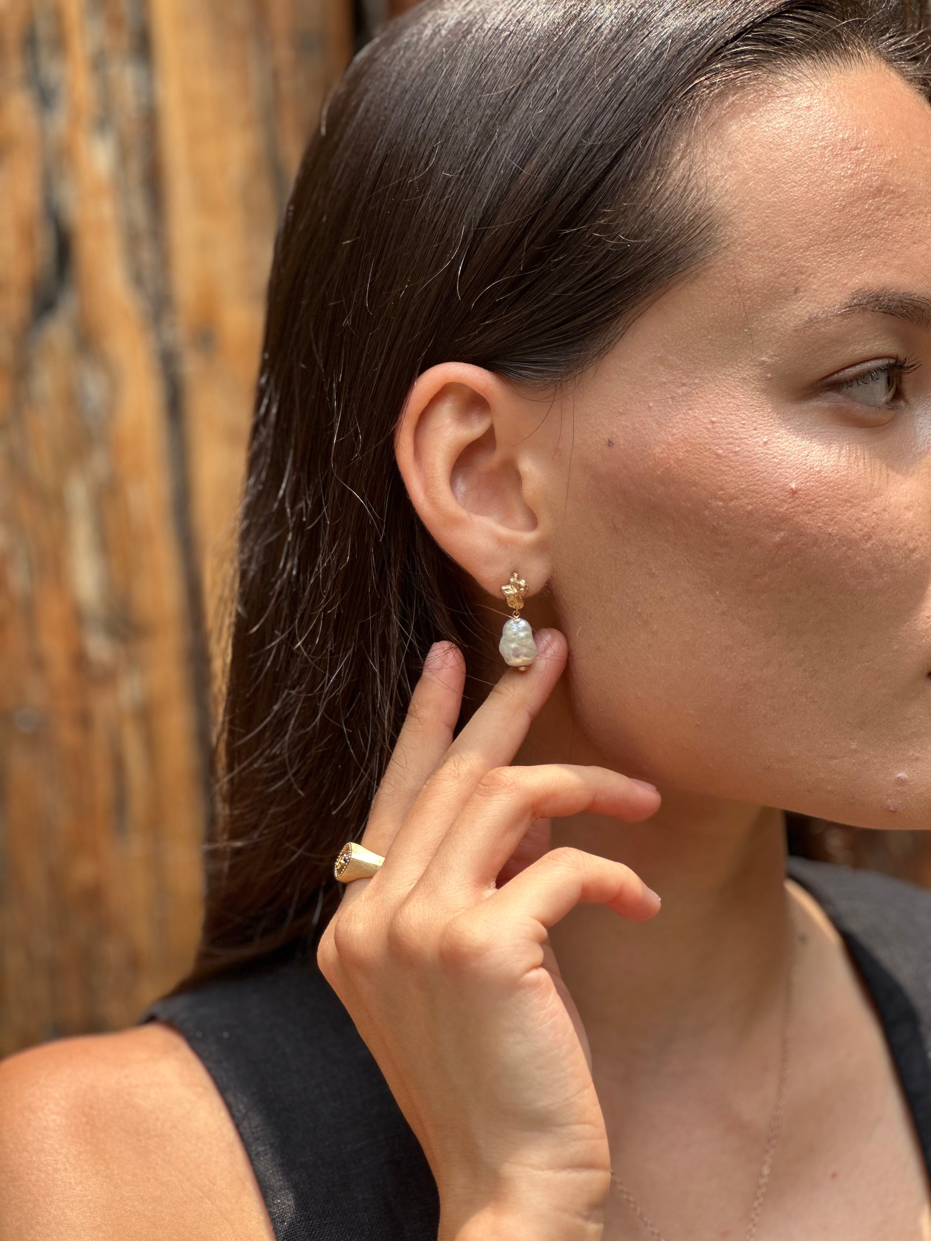 Small but mighty. These gold pearl earrings celebrate strength, resilience and the uniqueness of nature, let their power rub off on you each time you wear them. Plus they look amazing on.