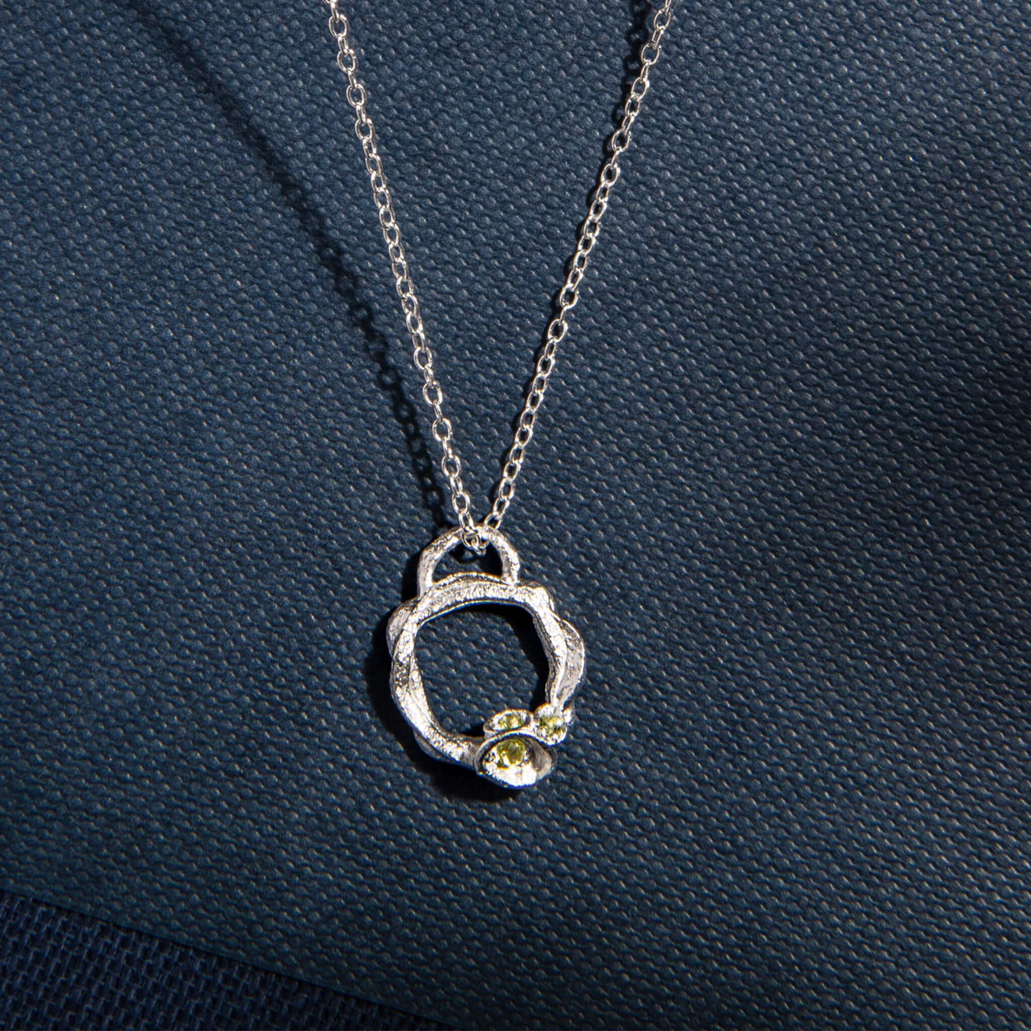 Set on a branch circle and nestled in stunning cup lichen, the vibrant green peridot gemstones connect us to the wonders of the natural world. Linked to happiness, light, and abundance, the birthstone of August creates a timeless necklace to be cherished.