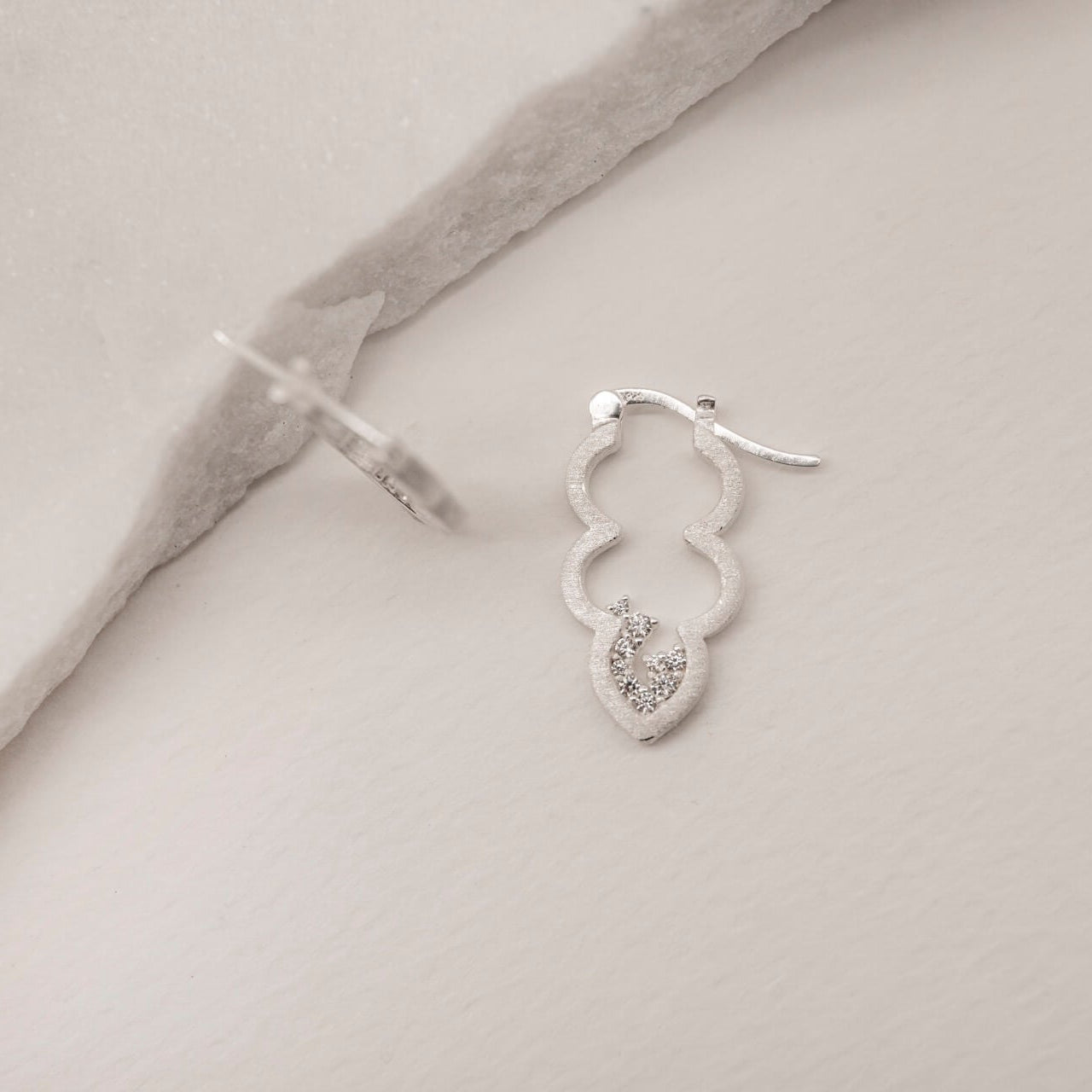 From the front the hoop has a brushed minimalist scallop style and reveals the cloud shape whenever you turn your head.