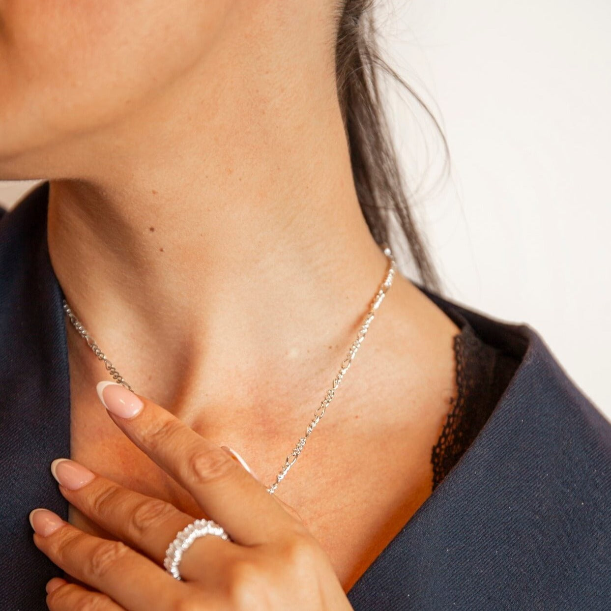 A classic for a reason this silver figaro chain necklace has a gorgeous design that will add something special to even your most basic T-shirt to the finishing touch to your going out look.