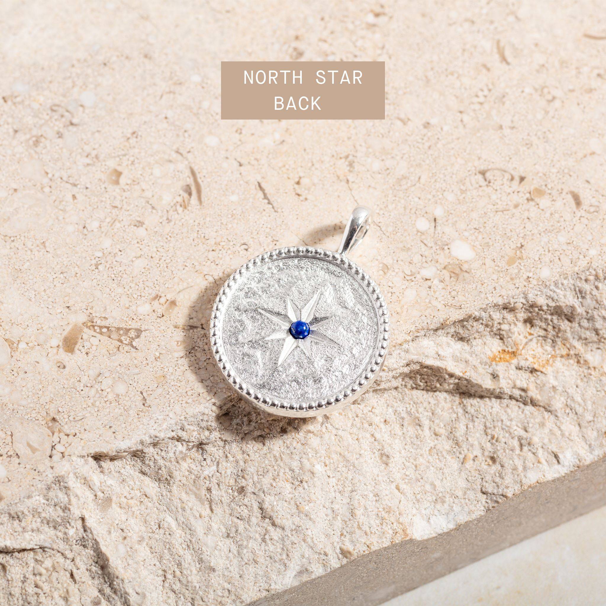 Endlessly wearable this unique large recycled silver pendant not only looks great but has hidden symbolism that you can wear as a daily talisman to guide you. Choose from the Hope, Kind, Love is Love, Thrive, Inspire and Brave. Wear the reverse side featuring a diamond-cut North Star and Lapis Lazuli for a 2-in-1 pendant destined to be a modern heirloom. Add it to your favourite chain