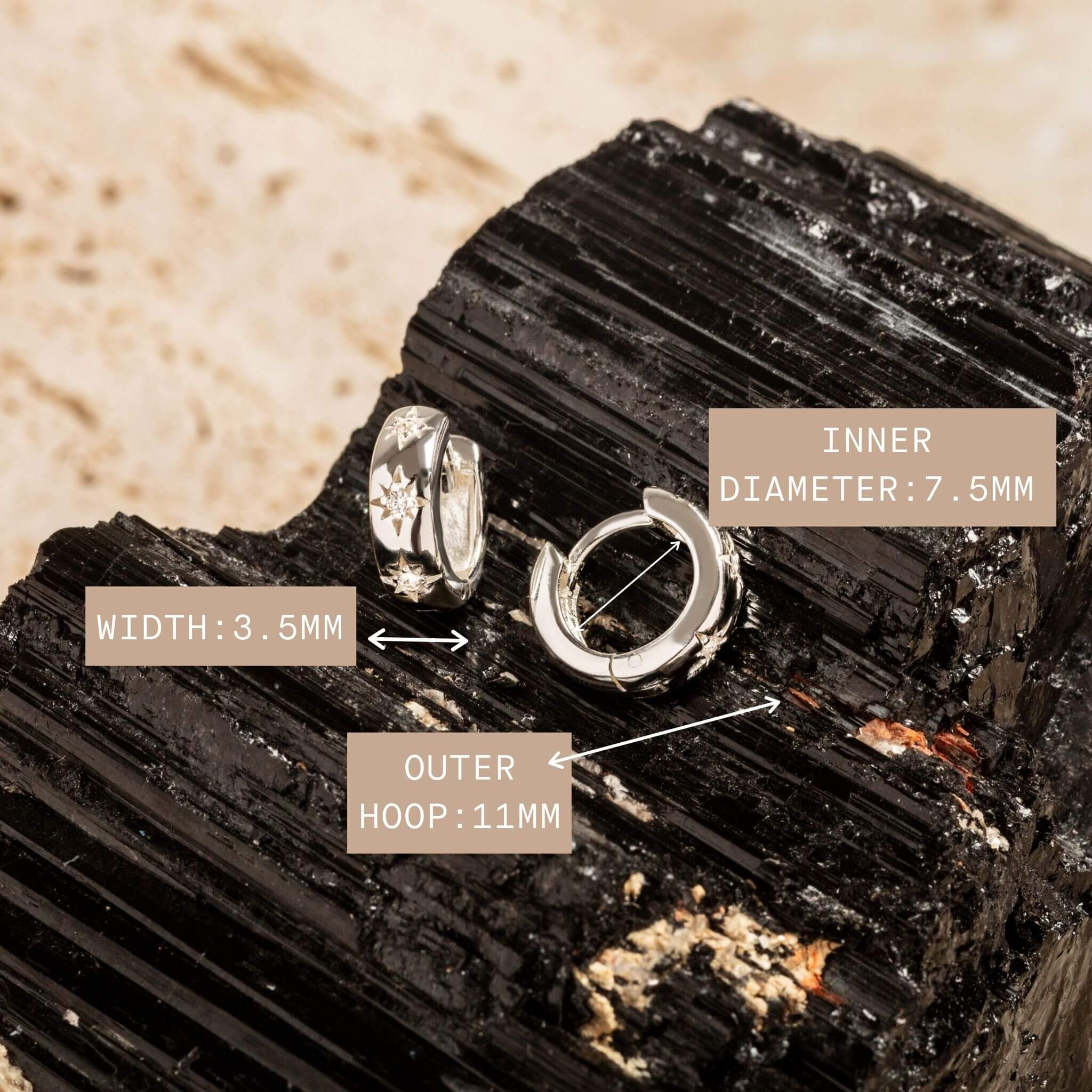 For the dreamers. Shine bright always with these sparkly silver star huggie hoop earrings. Sustainably made with certified recycled silver you can feel good about your daily dose of shimmer.