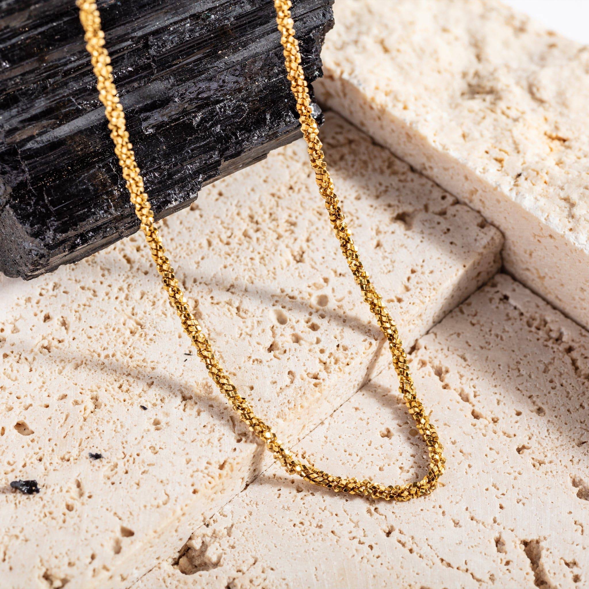 Our stardust gold vermeil necklace balances eye-catching drama with a dainty chain feel. Lightweight and tactile this unique demi-fine jewellery is all you need to feel reassuringly expensive every time you put it on.