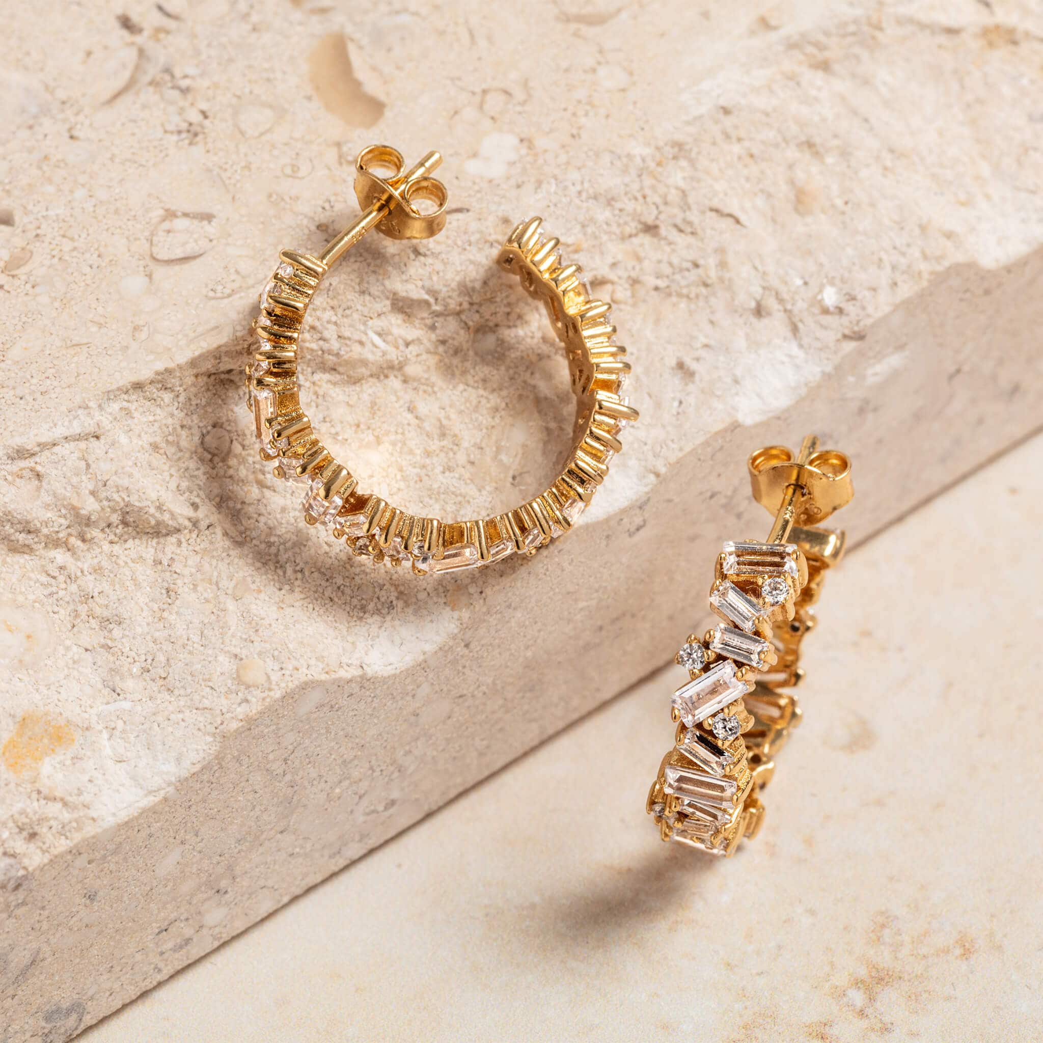 Sparkly Gold Baguette Hoop Earrings