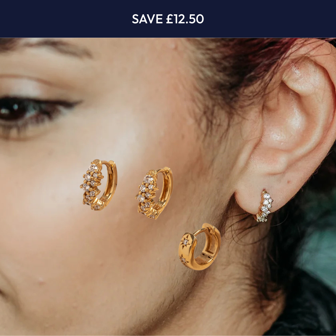 Glamour on repeat. When one pair of sparkly hoops just isn't enough. This luxurious duo gives you two stunning styles of gold huggies - both designed to catch the light and turn heads wherever you go.