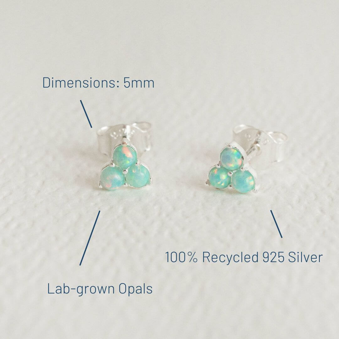 A trio of blue/green opals finished with recycled silver make these mini stud earrings an eye-catching dreamy finish to your look.